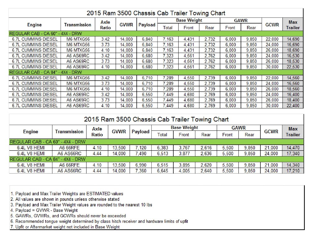 2015 RAM 3500 Chassis Cab Regular Cab 4x4 DRW Towing Chart