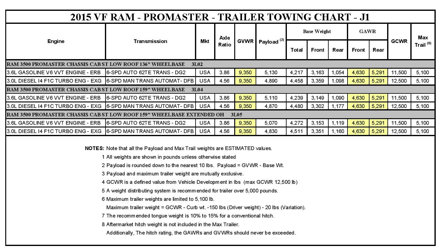 2015 RAM 3500 ProMaster Chassis Cab Towing Chart