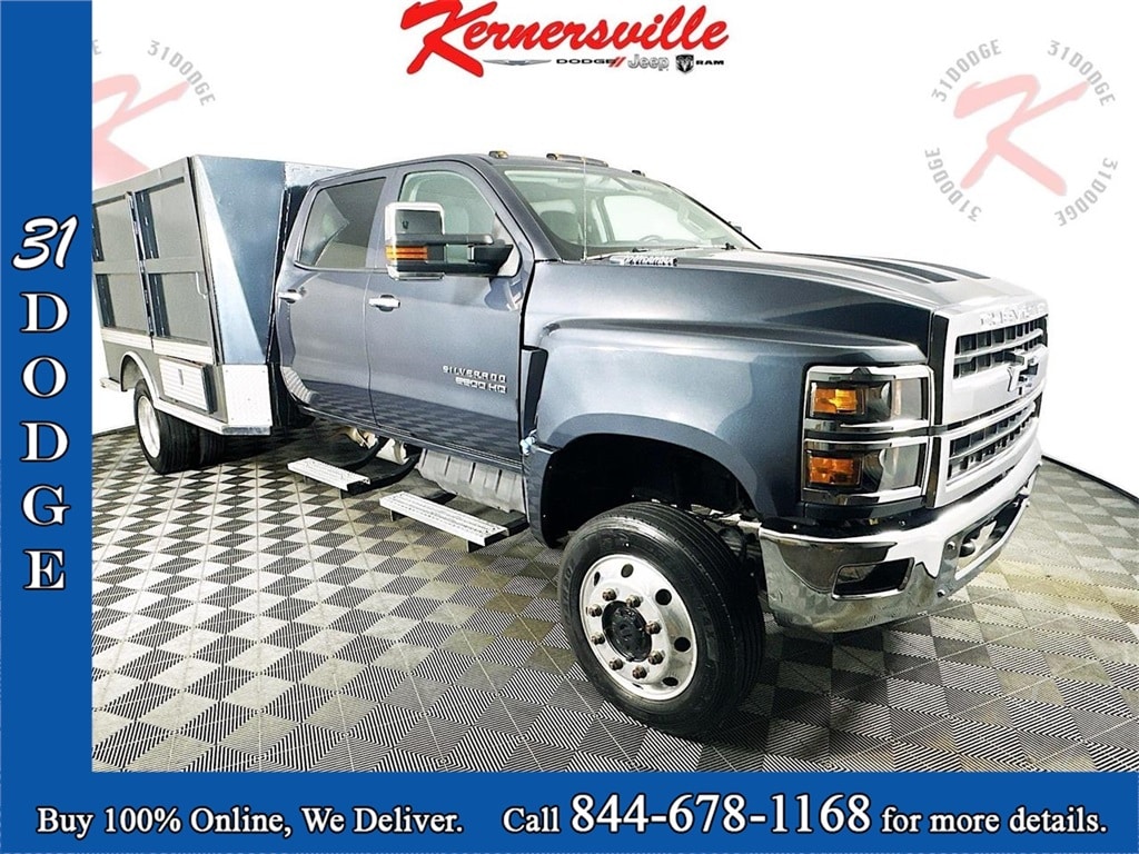 This One Owner CarFax 2022 CHEVROLET SILVERADO 5500HD WORK TRUCK DUALLY 4WD Crew cab truck with a long bed has a 6.6L 8 F OHV 32V engine, automatic transmission, cloth seats, rear-view camera, side steps, steering wheel controls, Bluetooth, towing package, trailer brake controller, keyless entry, and 59,855 miles. It is also equipped with 225/70R19.5 Tires, CM Truck Bed, 6 speaker audio system, Daytime Running Halogen Projector Beam Lamps, and 2 Exterior Storage Space.
