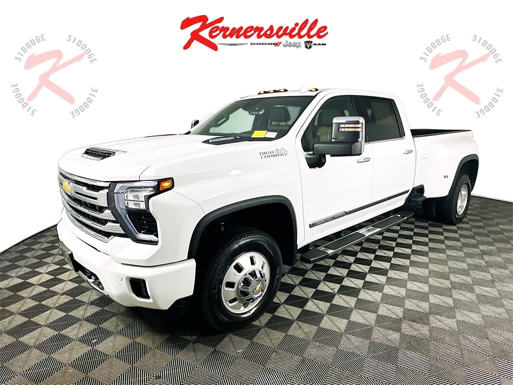 This One Owner Clean CarFax 2024 CHEVROLET SILVERADO 3500HD HIGH COUNTRY DUALLY 4WD Crew cab truck with dual rear wheels and a long bed has a 6.6L V8 F OHV 32V engine, automatic transmission, leather seats, navigation system, sunroof, rear-view camera, side steps, push start, remote start, heated steering wheel, heated seats, ventilated seats, front power seats, steering wheel controls, auxiliary input, USB port, Bluetooth, towing package, spray in bedliner, ball in bed, trailer brake controller, cruise control, keyless entry, and 77,684 miles. It is also equipped with LT235/80R18 tires, 18in Polished Forged Aluminum Wheels, High Country Premium Package, Technology Package, Gooseneck/5th Wheel Package, Trailering Package With Hitch Guidance, Head Up Display, Adaptive Cruise Control, Power Up/Down Tailgate, Animated LED Headlamps w/LED Daytime Running Lamps, Cornerstep Rear Bumper, Driver Seat and Mirror Memory Settings, 10 Way Power Seats, Dual Zone Climate Control, Universal Home Remote, BOSE Premium Sound System, SiriusXM Radio, WiFi Data, Android Auto, Apple CarPlay, 13.4 HD Color Touchscreen, Trailer Side Blind Zone Alert, Lane Departure Warning, and Forward Collision Alert.