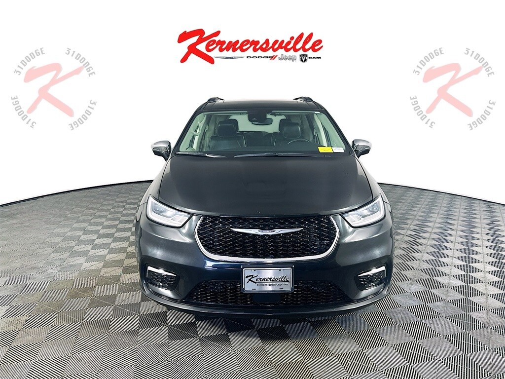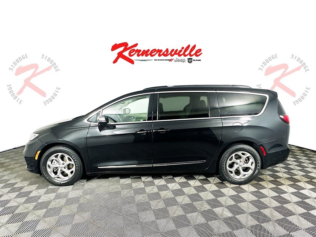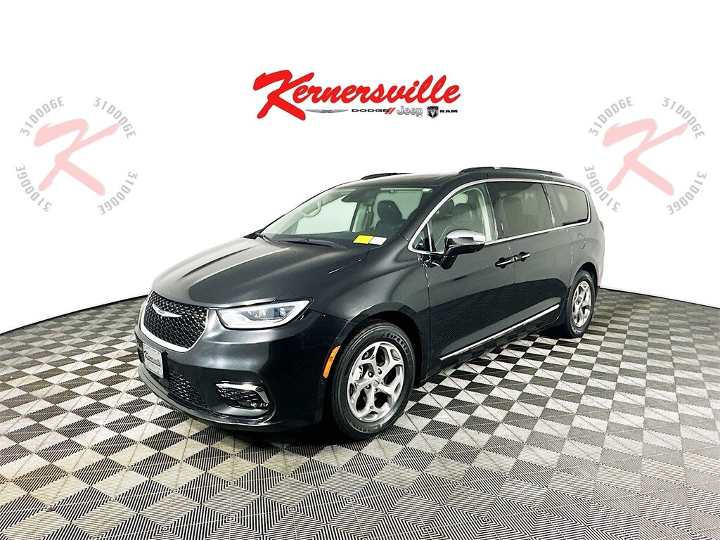 This 2022 CHRYSLER PACIFICA LIMITED FWD has a 3.6L V6 24V VVT engine, automatic transmission, leather seats, navigation system, panoramic sunroof, rear-view camera, push start, remote start, heated steering wheel, heated seats, front power seats, steering wheel controls, 3rd row seating, auxiliary input, USB port, Bluetooth, cruise control, keyless entry, and 111,050 miles. It is also equipped with 18in Goodyear Tires, 18in X 7.5in Painted Aluminum Design 2 Wheels, Quick Order Package 27P, Exterior Mirrors with Heating Element, Uconnect 5 Nav with 10.1in Display Radio, 2 LCD Monitors, 4G LTE WiFi Hot Spot, Distance Pacing w/Traffic Stop Go, Adaptive Cruise Control, SiriusXM, Proximity Sliding Rear Doors, Blind Spot Detection Blind Spot, and Forward Collision Warning Plus.