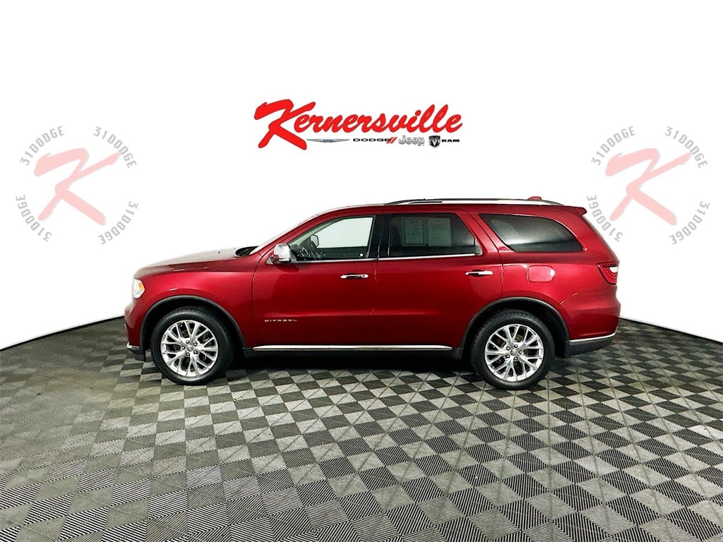 This Clean CarFax 2015 DODGE DURANGO CITADEL AWD has a 3.6L V6 Flex Fuel 24V VVT engine, automatic transmission, leather seats, navigation system, sunroof, rearview camera, push start, remote start, heated steering wheel, heated seats, ventilated seats, front power seats, steering wheel controls, 3rd row seating, auxiliary input, USB port, Bluetooth, cruise control, keyless entry, and 145,840 miles. It is also equipped with 265/50R20 Tires, 20 inch Tires, Blind spot assist, Auto headlights, Parkview sense, Uconnect with 8 inch touchscreen display, and automatic temperature control.