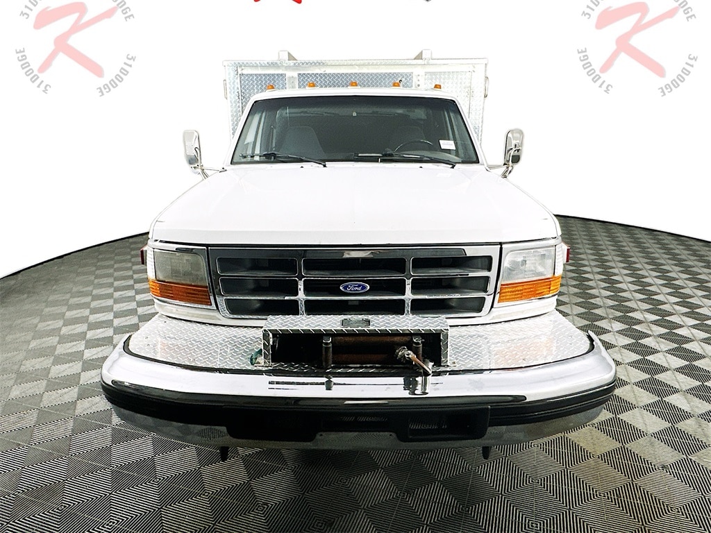 This Clean CarFax 1996 FORD F-450 CHASSIS XL RWD Regular cab truck with dual rear wheels has a 7.3L V8 F engine, automatic transmission, cloth seats, side steps, front power seats, steering wheel controls, towing package, cruise control, and 55,026 miles. It is also equipped with LT235/85R16 Tires, Large rear compartment with multiple lockable compartments, Red and white emergency lights, Clearance Lights, Side Mounted Compartment Locks, Reflective Safety Markings, Steel Bumper and Tow Hitch, front winch system, and a fold down rear loading ramp.