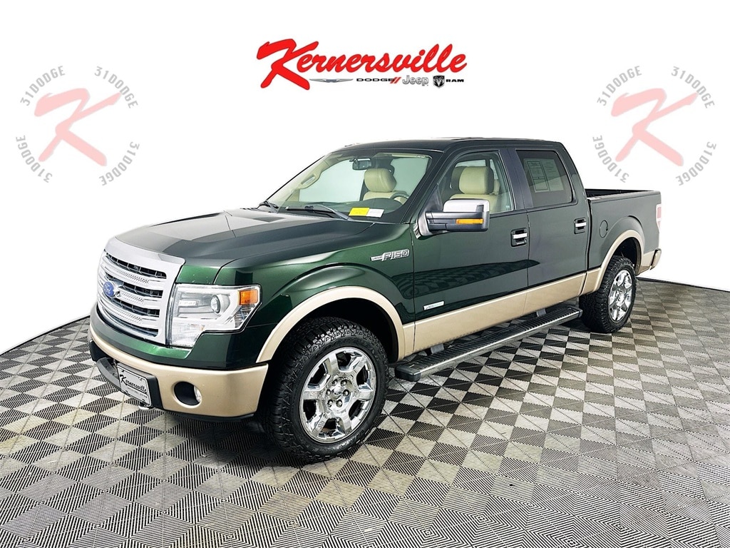 This Clean CarFax 2013 FORD F150 LARIAT 4WD Crew cab truck has a 3.5L V6 engine, automatic transmission, leather seats, navigation system, sunroof, rear-view camera, remote start, front power seats, steering wheel controls, auxiliary input, USB port, Bluetooth, tailgate steps, bedliner, trailer brake controller, cruise control, and 137,904 miles. It is also equipped with 275/55R20 Tires, Reverse Sensing System, Universal Garage Door Opener, PowerFold Heated Side Mirrors, SYNC with MyFord Touch, 2nd row B-pillar grab handles, Illuminated entry, and Hill start assist.