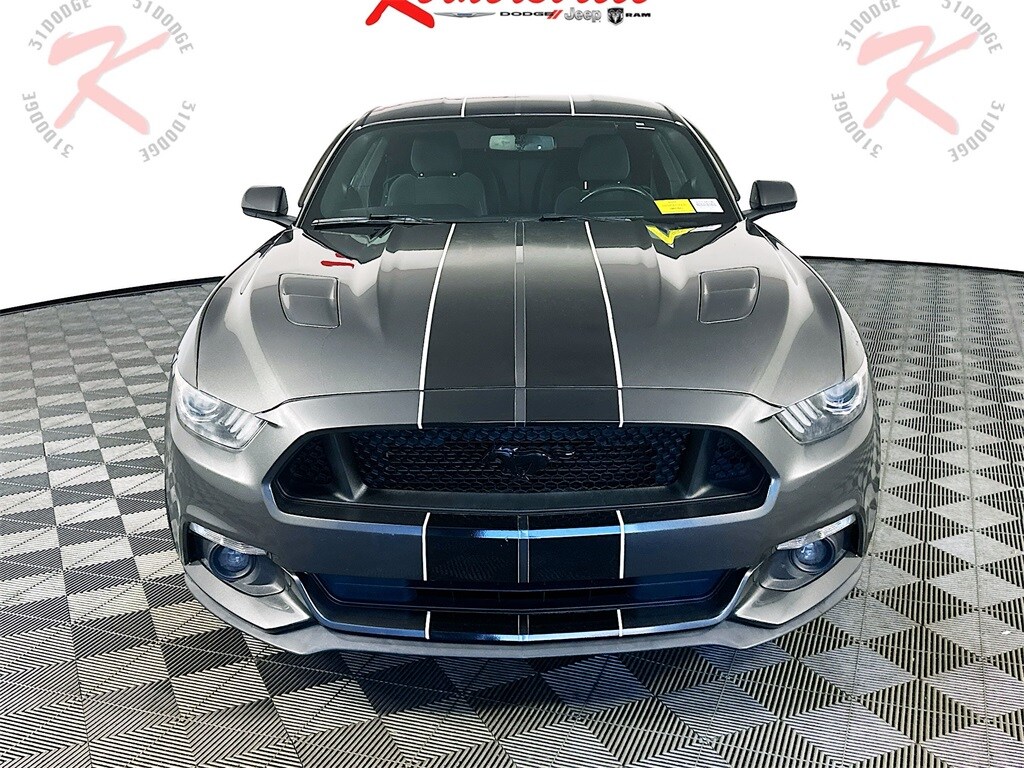 This 2016 Ford Mustang GT Coupe is a true performance sports car with bold styling, iconic V8 power, and a driver focused cabin built for everyday cruising or weekend fun. Under the hood is a 5.0L Ti-VCT V8 paired with a 6-speed manual transmission for an engaging drive, and performance tech like Track Apps with Line Lock adds extra excitement. Safety and confidence features include AdvanceTrac with ESC, a rear view camera, multiple airbags, SOS post crash alert, a tire pressure monitoring system, and a perimeter alarm. Inside you will enjoy cloth bucket seating with a power driver seat, one touch power windows, power locks, cruise control, a leather wrapped steering wheel, center console storage, front floor mats, and a tilt and telescoping steering column. Technology highlights include SYNC with handsfree phone capability, an AM FM single CD MP3 audio system, USB connectivity, and steering wheel mounted controls. Exterior features include HID projector headlamps, LED fog lamps, LED signature lighting, sequential turn signals, dual exhaust styling, hood vents, and a rear window defroster for added convenience.
