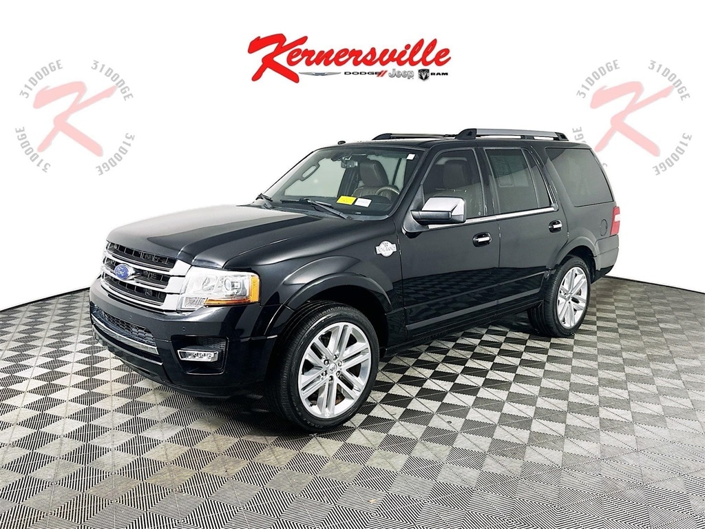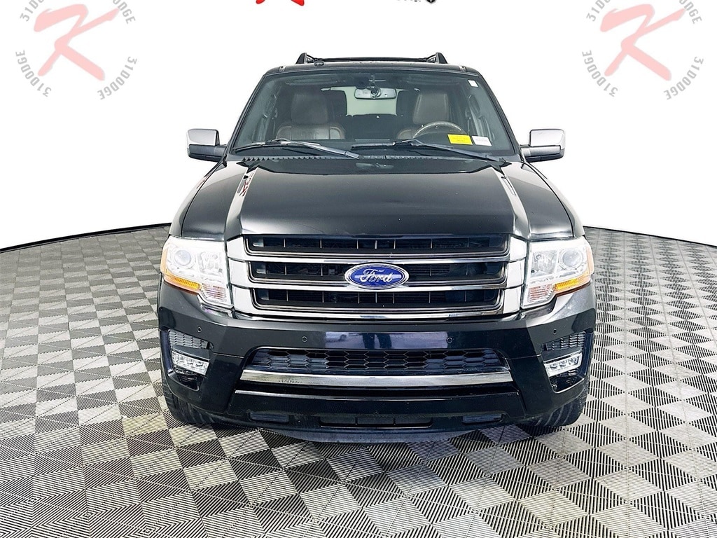 2017 Ford Expedition King Ranch 4x2 in Shadow Black Metallic showcases an elevated blend of luxury, versatility, and EcoBoost performance. The potent 3.5L EcoBoost V6 joins a SelectShift automatic transmission and Limited Slip 3.73 axle for seamless power delivery and robust capability, while the GVWR Payload Package ensures true do-it-all utility. The upscale Ebony Mesa leather interior features heated and cooled perforated front buckets, second-row captains chairs, a leather steering wheel, power adjustable pedals, elegant ambient lighting, and the King Ranch Monotone Appearance Package for a polished touch. Tech highlights include SYNC 3 with 8 touchscreen, Voice-Activated Navigation, SiriusXM, Sony premium audio, multiple USB/12V ports, universal garage door opener, and dual-zone climate for the ideal cabin atmosphere. Exterior features power-deployable running boards, 22 polished aluminum wheels, all-season tires, a power liftgate, premium chrome accents, roof rack, privacy glass, fog lamps, perimeter lighting, flip-up rear window, and a moonroof. Safety and convenience come together: Back-Up Camera, Rear Parking Sensors, AdvanceTrac with RSC, Safety Canopy airbags, tire pressure monitoring, and MyKey capability. Well-equipped for any family adventure.