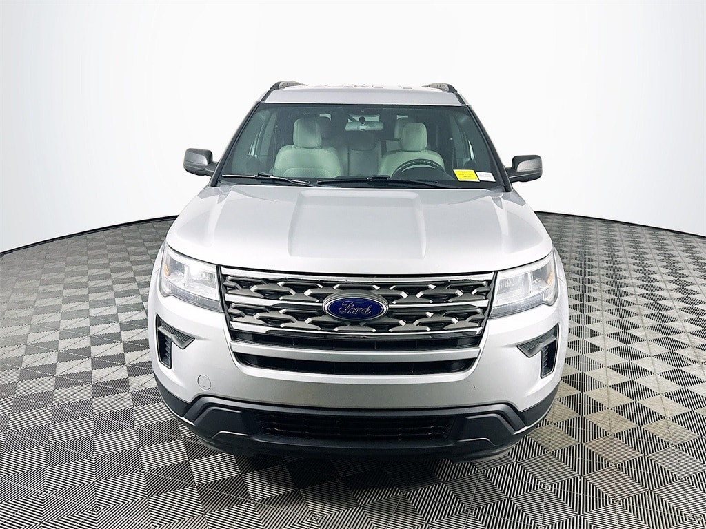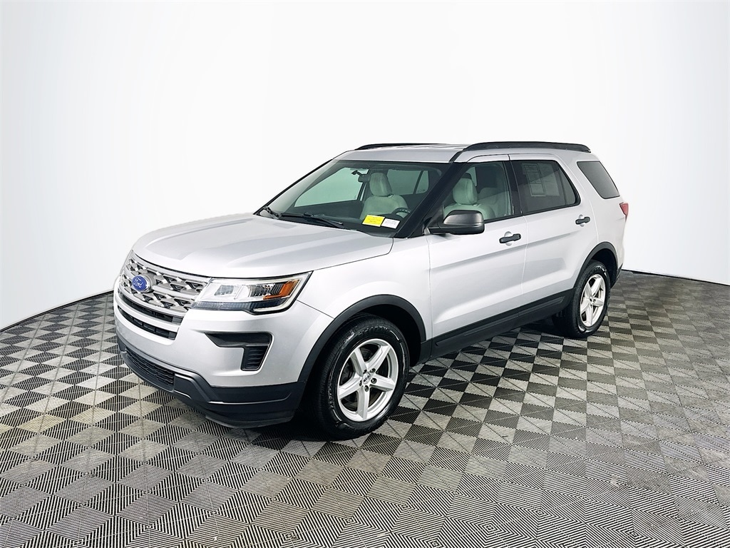 This Clean CarFax 2018 FORD EXPLORER BASE 4WD has a 3.5L V6 F DOHC 24V engine, automatic transmission, cloth seats, rear-view camera, front power seats, steering wheel controls, 3rd row seating, auxiliary input, USB port, Bluetooth, cruise control, keyless entry, and 114,853 miles. It is also equipped with 245/60R18 tires, 18in Painted Aluminum Wheels, Equipment Group 100A, SYNC Communication and Entertainment System, 2 LCD Monitors In The Front, Fixed 50 50 Split Bench Cloth 3rd Row Seat Front, Manual Fold Into Floor, Power Heated Side Mirrors w/Convex Spotter, Rear Window w/Fixed Interval Wiper, and Heated Wiper Park and Defroster.