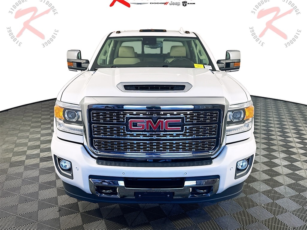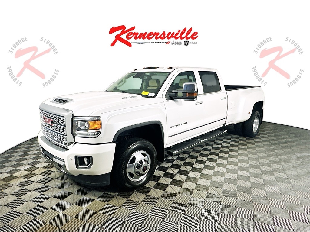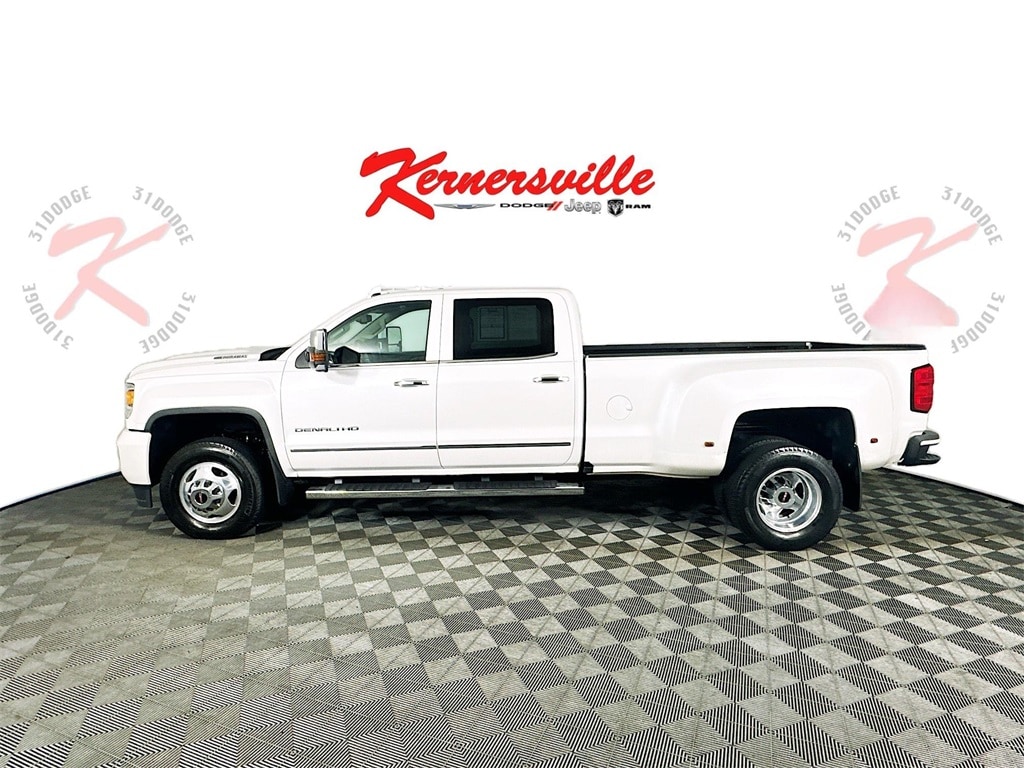 This Clean CarFax 2019 GMC SIERRA 3500HD DENALI 4WD Crew cab truck with dual rear wheels and a long bed has a Duramax 6.6L V8 Turbodiesel engine, automatic transmission, leather seats, navigation system, sunroof, rearview camera, side steps, remote start, heated steering wheel, heated seats, ventilated seats, cooled seats, front power seats, steering wheel controls, auxiliary input, USB port, Bluetooth, towing package, bedliner, 5th wheel mounting brackets, cruise control, keyless entry, and 69,096 miles. It is also equipped with LT235/80R17 Tires, Memory Seats, Universal Home Remote, Lane Departure Warning, Wireless Charging, Power Sliding Rear Window with Defogger, Dual-Zone Automatic Climate Control, 7 speaker system including subwoofer, and Console, floor mounted with cup holders, cell phone storage, power cord management, hanging file holder.