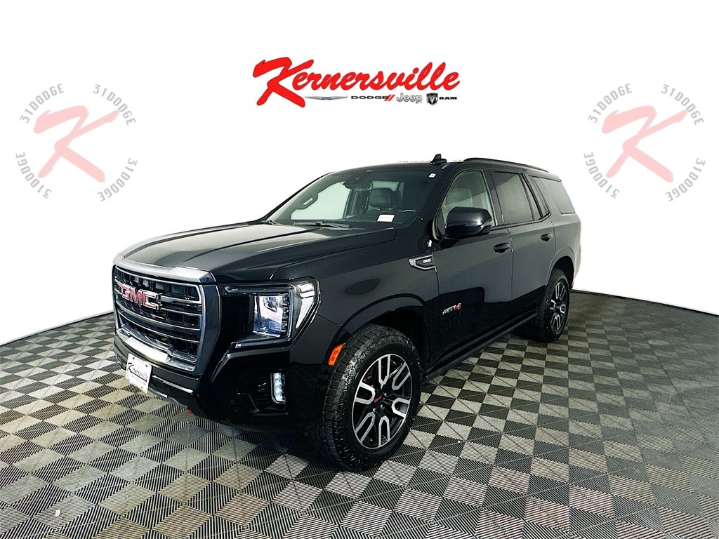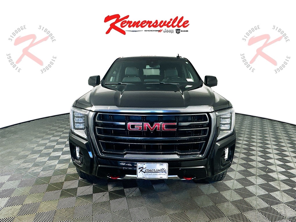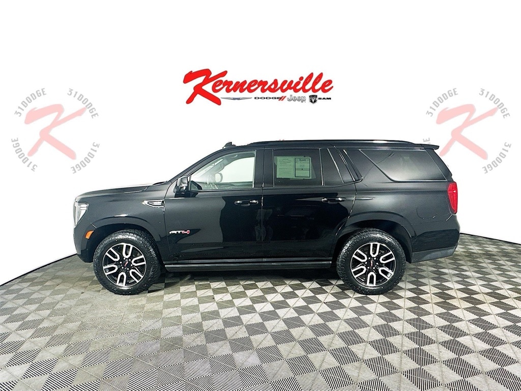 This Clean CarFax 2021 GMC YUKON AT4 4WD has a 5.3L V8 F OHV 16V engine, automatic transmission, leather seats, navigation system, panoramic sunroof, rear DVD entertainment system, rear-view camera, power side steps, push start, remote start, heated steering wheel, heated seats, ventilated seats, front power seats, steering wheel controls, 3rd row seating, auxiliary input, USB port, Bluetooth, towing package, trailer brake controller, cruise control, keyless entry, and 114,455 miles. It is also equipped with 275/60R20 tires, 20" Aluminum Wheels w/Carbon Grey Metallic Accents, AT4 Premium Package, Rear Seat Mounted 12.6 Screens, Apple CarPlay, Android Auto, 10.2 HD Color Touchscreen, Lane Keep Assist, Automatic Emergency Braking, Memory Settings, Tri Zone Automatic HVAC, and 9 Speaker BOSE Audio System.