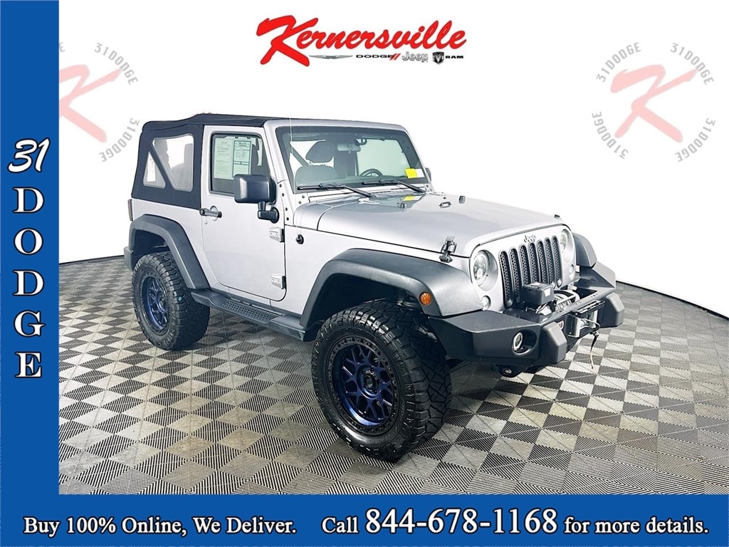 This 2016 JEEP WRANGLER SPORT 4WD has a 3.6L V6 24V VVT engine, automatic transmission, cloth seats, side steps, steering wheel controls, auxiliary input, USB port, Bluetooth, soft top roof, cruise control, and 89,404 miles. It is also equipped with 20in Nitto Ridge Grappler tires, Quick Order Package 24S, Connectivity Group, Premium Black Sunrider Soft Top, SIRIUS Satellite Radio, Android Auto, Apple CarPlay, 1 LCD Monitor, and a Front Mounted Winch.