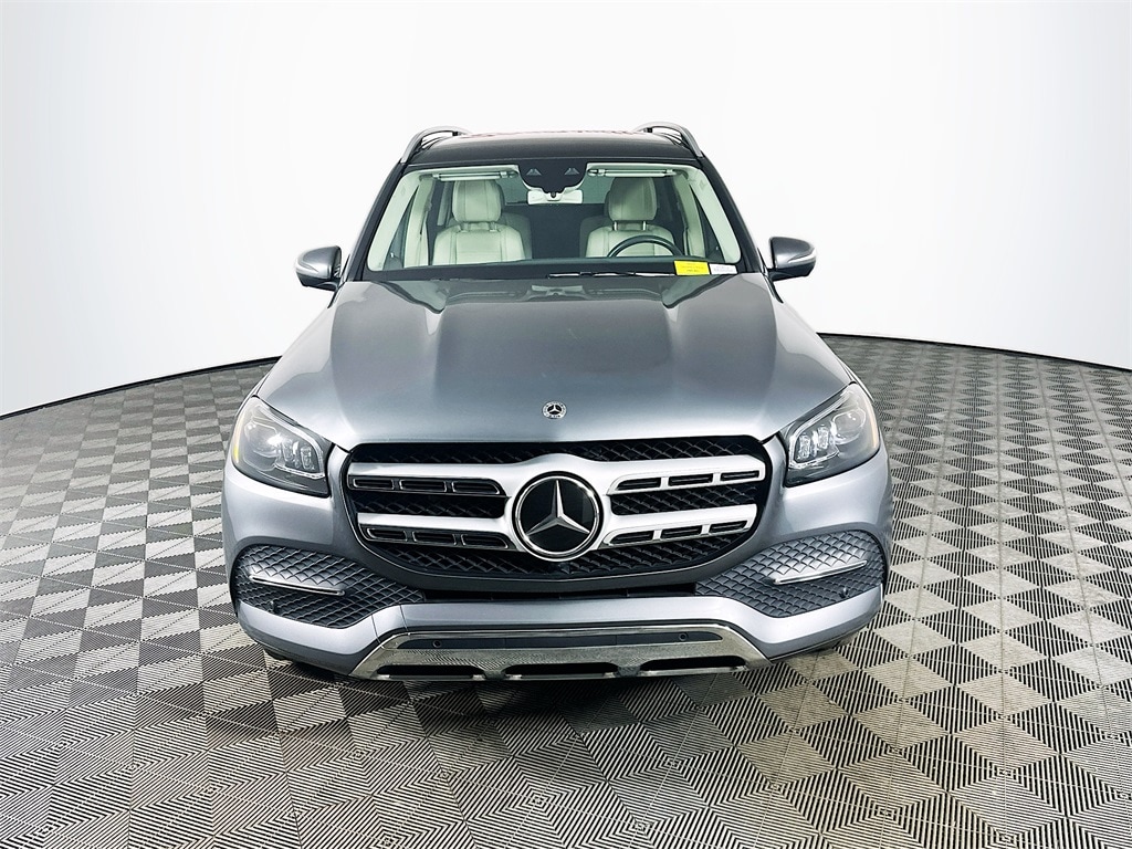 This 2020 Mercedes Benz GLS 450 4MATIC in Selenite Grey Metallic delivers full size luxury SUV comfort, advanced safety innovation, and refined turbocharged performance. Powered by a responsive turbocharged V6 engine paired with a smooth automatic transmission and 4MATIC all wheel drive, this GLS offers confident traction and composed highway performance. The advanced E Active Body Control suspension enhances ride quality and handling, while safety features include Active Brake Assist with cross traffic function, active lane keeping assist, traffic sign assist, surround view camera system, front and rear parking sensors, PRE SAFE technology, driver monitoring alert, and advanced airbag protection across all three rows. Inside the spacious 7 seat configuration, enjoy Exclusive Nappa leather seating, multi contour front seats with massage, heated and ventilated front seats, heated steering wheel, 4 zone automatic climate control, high gloss grey linden wood trim, black headliner, and a power liftgate for easy cargo access. Technology highlights include MBUX augmented video navigation, premium audio, and intuitive digital displays for a modern driving experience. Riding on bold 21 inch wheels with performance tires and featuring illuminated running boards and a panoramic roof, this Mercedes Benz GLS 450 blends executive luxury, family versatility, and advanced engineering into one exceptional SUV.