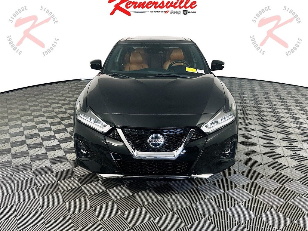 This 2019 NISSAN MAXIMA PLATINUM FWD has a 3.5L V6 DOHC 24V engine, automatic transmission, cloth seats, navigation system, rear-view camera, push start, remote start, heated steering wheel, heated seats, power seats, front power seats, steering wheel controls, USB port, Bluetooth, cruise control, keyless entry, and 110,943 miles. It is also equipped with 235/40R19 Tires, 19 Inch Wheels, Charcoal Headliner and Pillars, Intelligent Climate Control, Advanced Drive Assist, Hands Free Phone System, Nissan Voice Recognition, Apple CarPlay, Google Android Auto, Traffic Sign Recognition, Rain Detecting Wipers, Daytime Running Lights, Traction Control System, High Beam Assist, Intelligent Lane Intervention, Lane Departure Warning, Blind Spot Warning with Rear Cross Traffic Alert, and Intelligent Forward Collision.