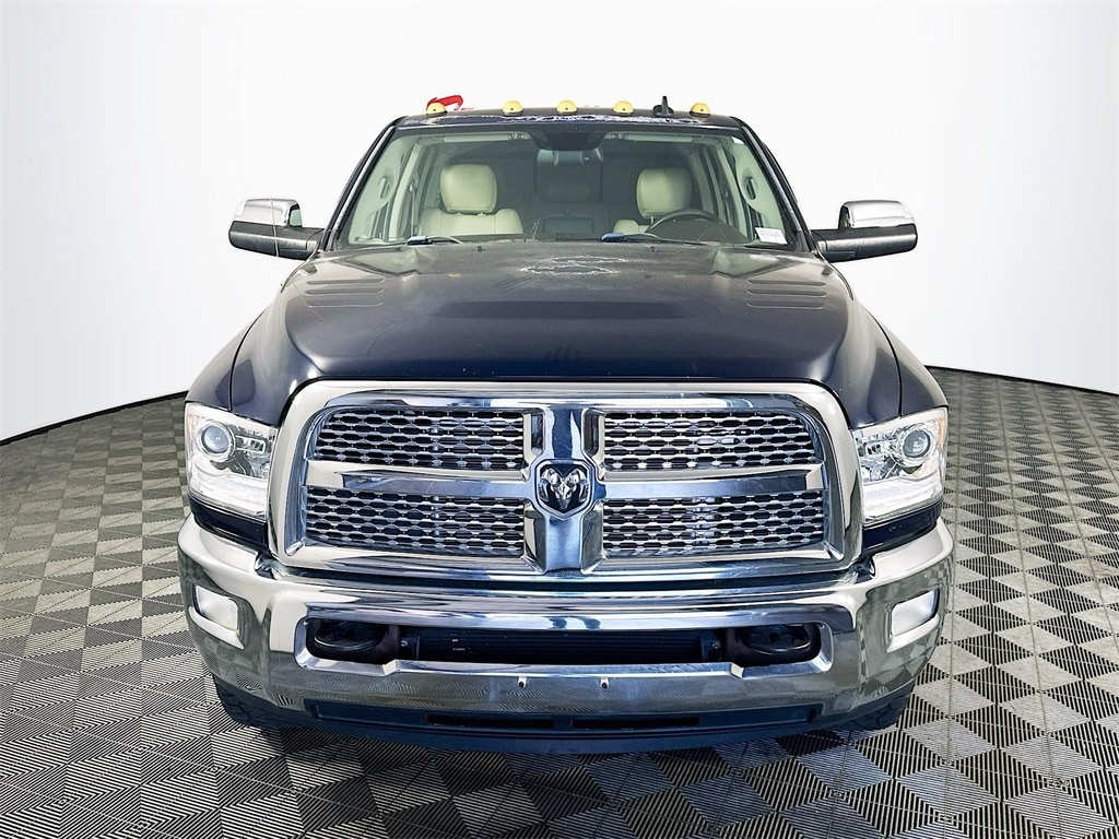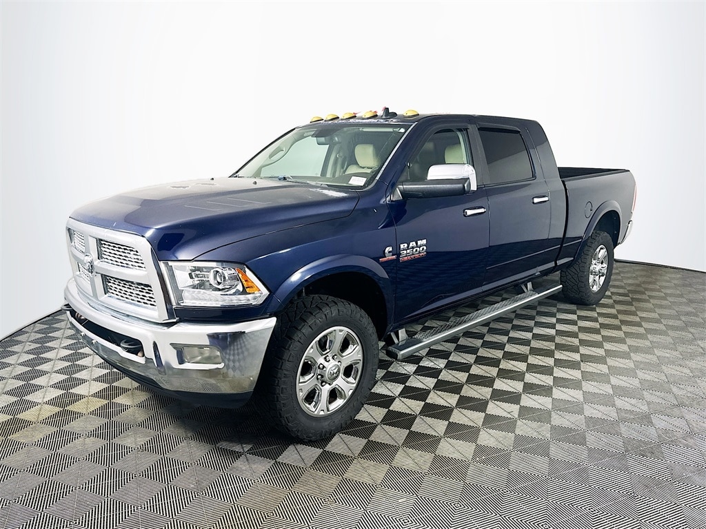 This One Owner Clean CarFax 2014 RAM 3500 LARAMIE 4WD Mega cab truck has a 6.7L I6 Turbodiesel engine, automatic transmission, leather seats, navigation system, rear-view camera, side steps, push start, remote start, heated steering wheel, heated seats, ventilated seats, front power seats, steering wheel controls, auxiliary input, USB port, Bluetooth, towing package, spray in bedliner, trailer brake controller, cruise control, keyless entry, and 149,609 miles. It is also equipped with 20in Road Grappler Tires, 20in X 8in Polished Aluminum Wheels, Quick Order Package 2FH Laramie, Power 10 Way Memory Driver Seat, RAM Active Air, SIRIUSXM Radio, Uconnect 8.4AN AM/FM/SXM/HD/BT/navigation Radio, Dual Zone Front Climate Control, Memory Settings, Projector Beam Halogen Headlamps w/Delay Off, and Chrome Front Bumper w/2 Tow Hooks.