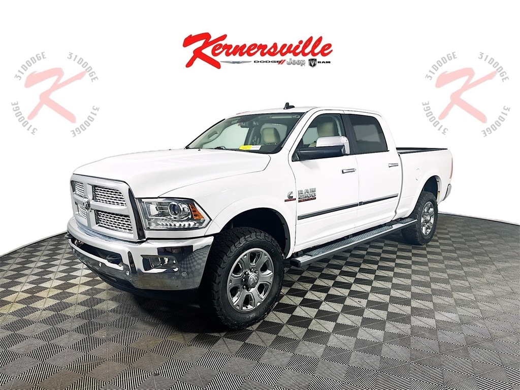 This 2017 Ram 2500 Laramie Crew Cab 4X4 is a powerful and refined heavy duty truck built to handle demanding work while delivering premium comfort and advanced technology. Powered by the legendary Cummins turbo diesel engine paired with a heavy duty automatic transmission, this Ram provides outstanding torque, towing capability, and long term durability. Trailering features such as trailer brake control, integrated tow wiring, fifth wheel and gooseneck prep, rear park assist, and a backup camera make hauling easier and more confident. Inside, the Laramie interior offers a comfortable and upscale environment with leather trimmed bucket seating, heated and ventilated front seats, a heated steering wheel, power adjustable driver seat with memory, and dual zone automatic climate control. Technology highlights include a Uconnect touchscreen system with navigation capability, Bluetooth connectivity, steering wheel mounted controls, and a premium Alpine sound system. Additional conveniences such as remote start, push button start, power folding heated tow mirrors, a power sliding rear window, and ample interior storage make this Ram well suited for both work and everyday driving. This Ram 2500 Laramie delivers the strength, capability, and comfort expected from a heavy duty pickup.