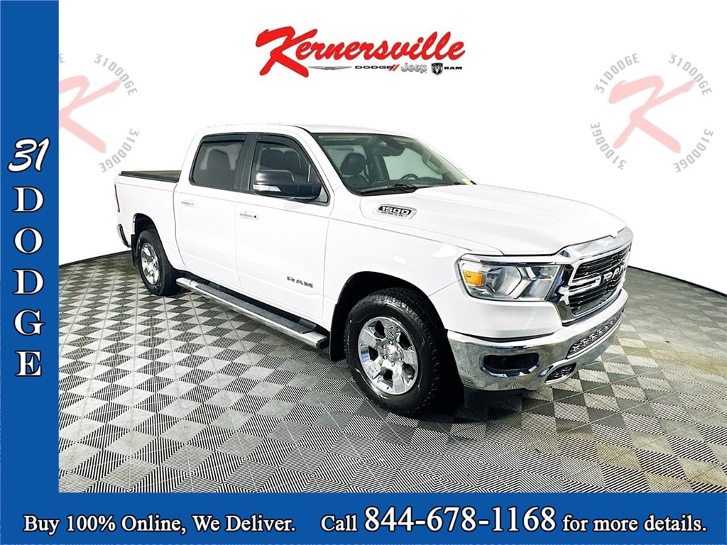 This 2019 RAM 1500 BIG HORN 4WD Crew cab truck has a HEMI 5.7L V8 Multi Displacement VVT engine, automatic transmission, leather seats, rearview camera, push start, front power seats, steering wheel controls, auxiliary input, USB port, Bluetooth, bedliner, trailer brake controller, cruise control, keyless entry, and 112,537 miles. It is also equipped with 275/65R18 Tires, 18 inch tires, Cargo trunk cover, Universal garage door opener, Rear window defroster, Halogen headlamps, Uconnect 3 with 5 inch display, 2nd row in floor storage bins, and Theft deterrent system.