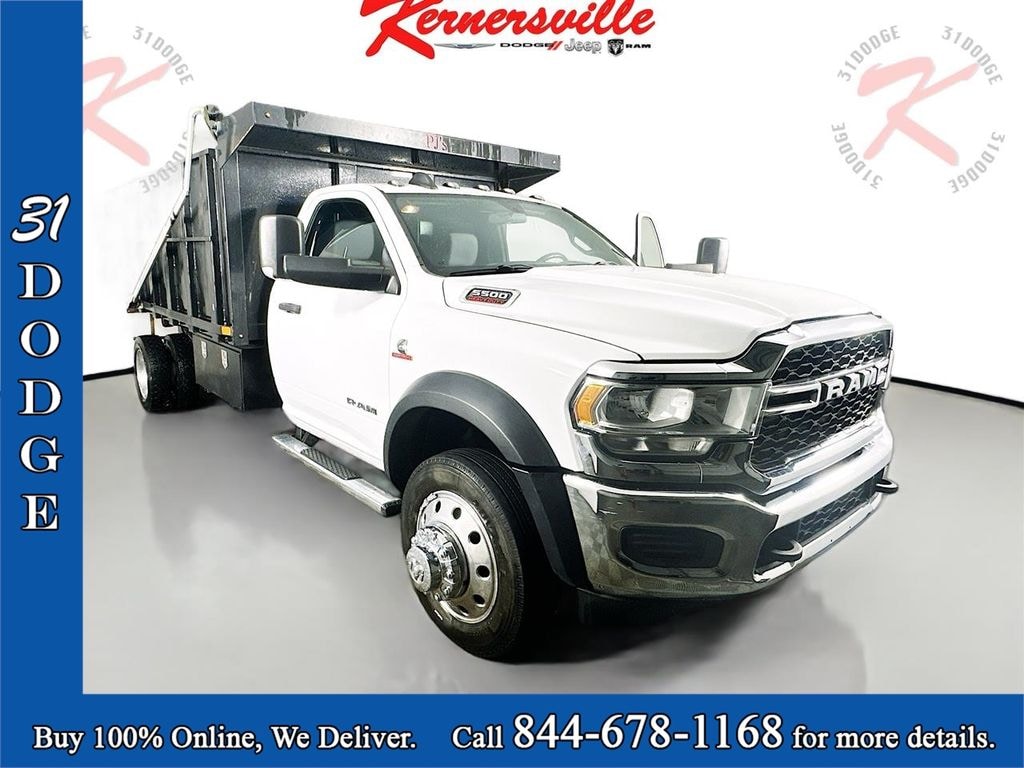 This 2021 Ram 5500 Chassis Tradesman Regular Cab 4X4 in Bright White Clear Coat with Black cloth interior is engineered for serious commercial capability and heavy duty performance. Powered by the legendary 6.7L I6 Cummins turbo diesel engine paired with the heavy duty 6 speed automatic Aisin AS69RC transmission, this Ram 5500 delivers the torque and durability required for demanding job site applications and upfit builds. Designed as a 120 inch cab and chassis configuration, it provides a versatile platform ready for flatbed, service body, utility body, or custom commercial equipment installation. Equipped with an anti spin differential rear axle, manual shift on the fly transfer case, electronic stability control, heavy duty rear stabilizer bar, 730 amp maintenance free battery, 180 amp alternator, and 52 gallon rear fuel tank with available 22 gallon auxiliary tank, this truck is built for long hours and tough workloads. Functional features include trailer brake controller, trailer light check, 7 pin trailer wiring harness, upfitter electronic module, dash pass thru wire circuits, stationary elevated engine idle, push button start, speed control, automatic headlamps, clearance lamps, tow hooks, and folding trailer tow mirrors for enhanced visibility. Inside the durable cabin, enjoy a 40 20 40 split bench seat, air conditioning, tilt steering column, integrated voice command with Bluetooth, full function media hub with dual USB and auxiliary port, instrument panel mounted auxiliary switches, 12 volt power outlet, black vinyl floor covering, and behind the seat storage for practical work ready convenience. Exterior highlights such as 19.5 inch aluminum wheels, tinted glass, and chrome appearance accents complete the professional look. Combining Cummins diesel power, commercial grade strength, and versatile chassis capability, this Ram 5500 Tradesman 4X4 is built to handle the toughest business demands with confidence and reliability.