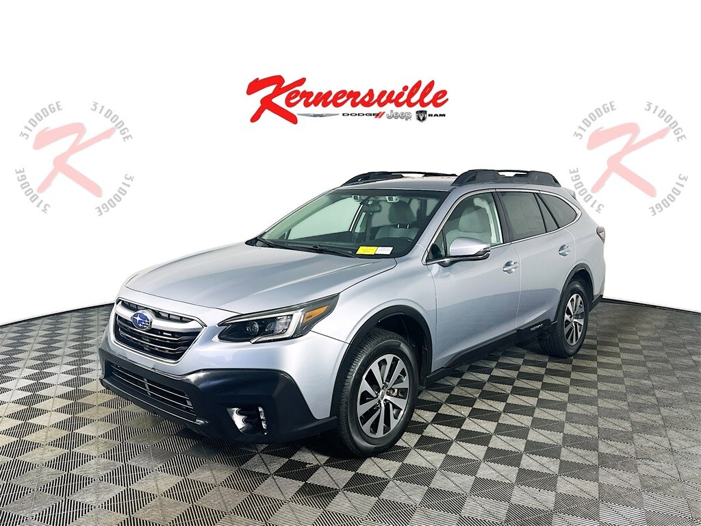 This One Owner Clean CarFax 2021 SUBARU OUTBACK PREMIUM AWD has a 2.5L 4-Cylinder DOHC 16V engine, automatic transmission, cloth seats, rearview camera, push start, heated seats, ventilated seats, front power seats, steering wheel controls, auxiliary input, USB port, Bluetooth, cruise control, keyless entry, and 105,058 miles. It is also equipped with 225/65R17 Tires, Roof racks, Rear Cross Traffic Alert, Valet Function, Dual Zone Front Automatic Air Conditioning, 18 Gallon Fuel Tank, Automatic High beams, and 2 Seatback Storage Pockets.
