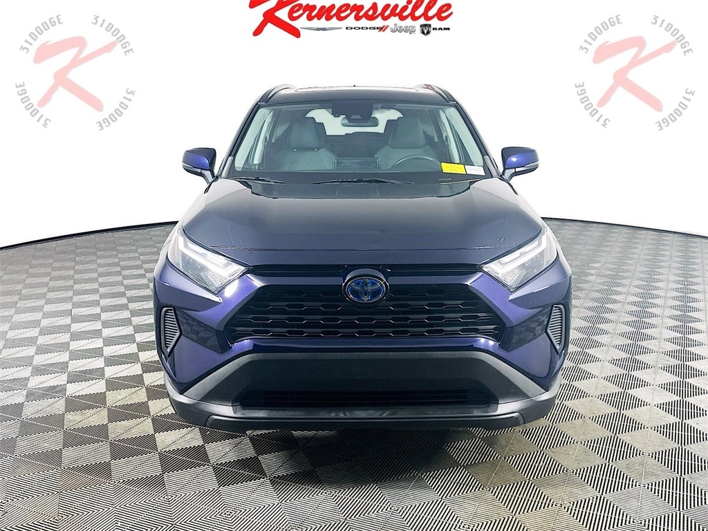 This 2022 Toyota RAV4 Hybrid XLE AWD in Blueprint with Black fabric interior delivers outstanding hybrid fuel efficiency, advanced safety technology, and versatile SUV capability in a stylish compact crossover. Powered by a responsive 4 cylinder hybrid engine paired with electronic on demand all wheel drive, this RAV4 Hybrid offers impressive fuel economy rated at 41 MPG city and 38 MPG highway while maintaining confident traction in varying road conditions. Equipped with Toyota Safety Sense, it features a pre collision system with pedestrian detection, lane tracing assist, lane change assist, adaptive cruise control with steering assist, blind spot monitor with rear cross traffic alert, collision mitigation front, driver knee airbag, seat mounted side airbags, curtain airbags for first and second rows, rear child safety locks, and low tire pressure warning for enhanced peace of mind. The XLE Grade Convenience Package and XLE Grade Weather Package add desirable comfort and functionality including a power liftgate, heated front seats, heated power side mirrors, dual zone automatic climate control, and upgraded driver assistance features. Inside the thoughtfully designed cabin, enjoy a smart key system with push button start, full floor console with covered storage, multiple 12 volt power outlets, metal look interior accents, driver information display, cloth seating surfaces, adjustable head restraints, day night rearview mirror, and generous cargo space with liftgate rear access. Exterior highlights include LED projector low and high beam headlamps with automatic high beams, front fog lamps, roof rack rails, body colored heated power mirrors with turn signal indicators, deep tinted glass, lip spoiler, black bodyside cladding, and bold 17 inch silver aluminum alloy wheels for a modern appearance. Combining exceptional hybrid efficiency, all wheel drive capability, advanced driver assistance systems, and everyday practicality, this RAV4 Hybrid XLE AWD is an excellent choice for drivers seeking fuel savings, technology, and year round versatility.
