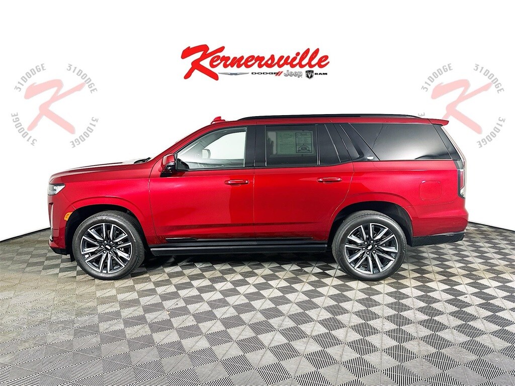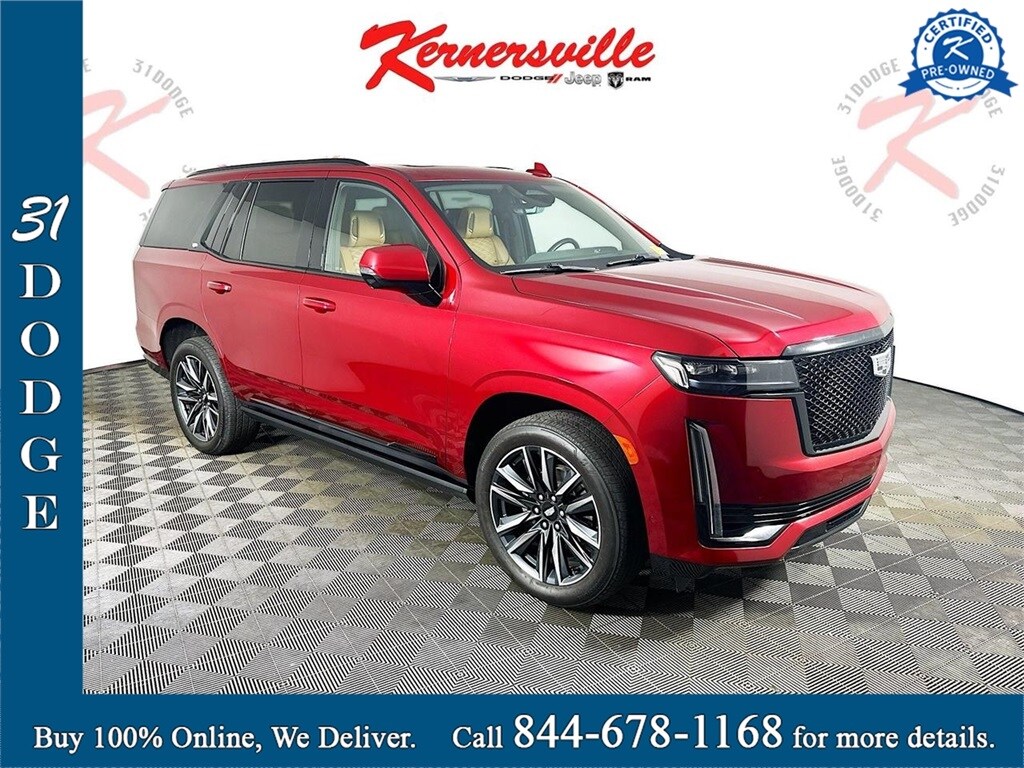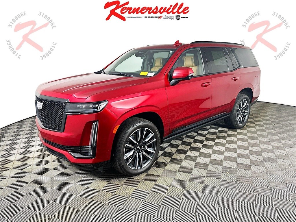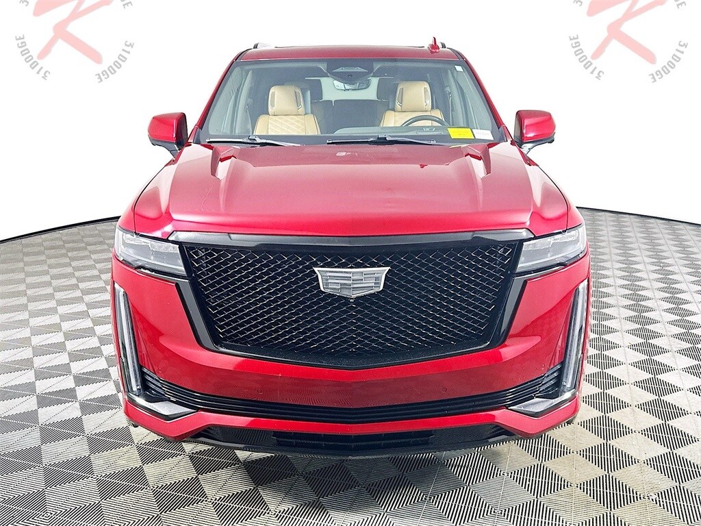 This 2021 Cadillac Escalade Sport 4WD in Infrared Tintcoat with Brandy and Dark Atmosphere full leather interior delivers bold V8 performance, cutting edge OLED technology, and unmistakable Cadillac luxury in a full size premium SUV. Powered by the commanding 6.2L V8 engine paired with a refined 10 speed automatic transmission and four wheel drive, this Escalade offers strong acceleration, smooth highway cruising, and confident traction in varying road conditions. Performance enhancements such as Magnetic Ride Control, electronic limited slip differential, automatic stop start, and available Air Ride adaptive suspension provide a composed and responsive driving experience. Advanced safety and driver assistance features include forward collision alert, front pedestrian braking, rear pedestrian alert, lane keep assist with lane departure warning, trailer side blind zone alert, rear cross traffic alert, HD surround vision, enhanced automatic emergency braking, reverse automatic braking, safety alert seat, brake pad monitor, Teen Driver technology, and theft deterrent package for added confidence. Inside the meticulously crafted cabin, enjoy a stunning 16.9 inch OLED infotainment display with embedded navigation and voice recognition, 14 inch OLED reconfigurable cluster, 19 speaker premium audio system, wireless Apple CarPlay and wireless Android Auto capability, wireless device charging, head up display, power panoramic sunroof, rear camera mirror, adaptive remote start, passive entry with keyless start, heated steering wheel, power 12 way front seats with power lumbar, heated and ventilated front seats, heated second row bucket seats with power release, power folding third row, memory settings for driver seat and mirrors, tri zone automatic climate control, conversation enhancement, selectable interior lighting, 110 volt power outlet, soft close doors, and hands free power liftgate. Exterior details such as illuminated door handles, IntelliBeam automatic high beams, LED headlamps and tail lamps, power assist steps with perimeter lighting. Combining advanced Cadillac technology, premium craftsmanship, and commanding SUV capability, this Escalade Sport 4X4 stands out as a luxury flagship built for performance, comfort, and presence.