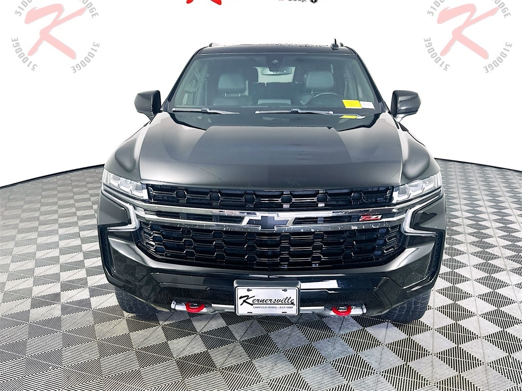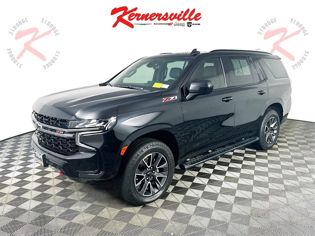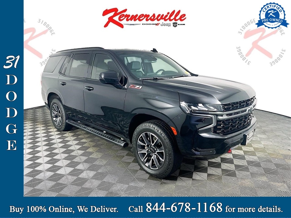 This Clean CarFax 2021 CHEVROLET TAHOE Z71 4WD has a 5.3L V8 F OHV 16V engine, automatic transmission, leather seats, Certified Pre-Owned, navigation system, panoramic sunroof, rear DVD entertainment system, rear-view camera, side steps, push start, remote start, heated seats, ventilated seats, front power seats, 3rd row seating, auxiliary input, USB port, Bluetooth, cruise control, keyless entry, and 91,893 miles. It is also equipped with 275/60R20 Tires, 20in Machined Aluminum Wheels w/Technical Gray Pockets, Rear Media and Nav Package, Rear 12.6in Color Touch LCD HD Screens, Apple CarPlay, Android Auto, 10.2in HD Color Touchscreens, Voice Recognition, Following Distance Indicatior, Front Pedestrian Braking, Automatic Emergency Braking, Hands Free Liftgate, Intellibeam Auto High Beam Lamps, Memory Settings, Tri Zone Automatic HVAC, SiriusXM Radio, 4G LTE WiFi, Wireless Charging, and 9 Speaker BOSE Audio System.
