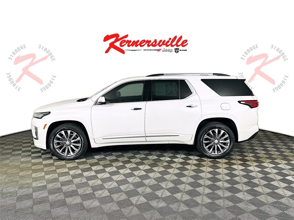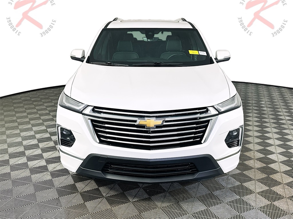 This 2023 Chevrolet Traverse Premier FWD in Iridescent Pearl Tricoat with Jet Black interior offers spacious three row SUV versatility, refined V6 performance, and advanced driver assistance technology for families and daily travel. Powered by a strong 3.6L V6 SIDI VVT engine paired with a smooth 9 speed automatic transmission and front wheel drive system, this Traverse delivers confident acceleration and comfortable highway cruising. Safety and driver assistance features include HD Surround Vision, enhanced automatic emergency braking, forward collision alert, lane keep assist with lane departure warning, lane change alert with side blind zone alert, rear cross traffic alert, following distance indicator, IntelliBeam automatic high beams, and rear park assist to enhance driver awareness. Inside the spacious cabin, the Premier trim provides premium comfort with heated and ventilated front seats, heated rear outboard seats, a heated steering wheel, power driver seat with memory settings, power tilt and telescopic steering column, wireless phone charging, universal home remote, and tri zone automatic climate control to keep all passengers comfortable. Technology highlights include the Chevrolet Infotainment 3 Plus system with navigation, an 8 inch HD color touchscreen display, Bluetooth connectivity, wireless Apple CarPlay and Android Auto capability, and a Bose premium 10 speaker sound system for immersive audio quality. Exterior highlights include LED headlamps, LED daytime running lamps, LED tail lamps, chrome roof rails, power folding heated mirrors with integrated turn signals, a hands free power liftgate for convenient cargo access, and the impressive dual Skyscape panoramic sunroof that brings open air light into the cabin. Stylish 20 inch machined face aluminum wheels complete the bold design of this Traverse Premier. Combining strong V6 performance, advanced safety technology, and spacious three row comfort, this Chevrolet Traverse Premier is built for family travel and everyday driving.