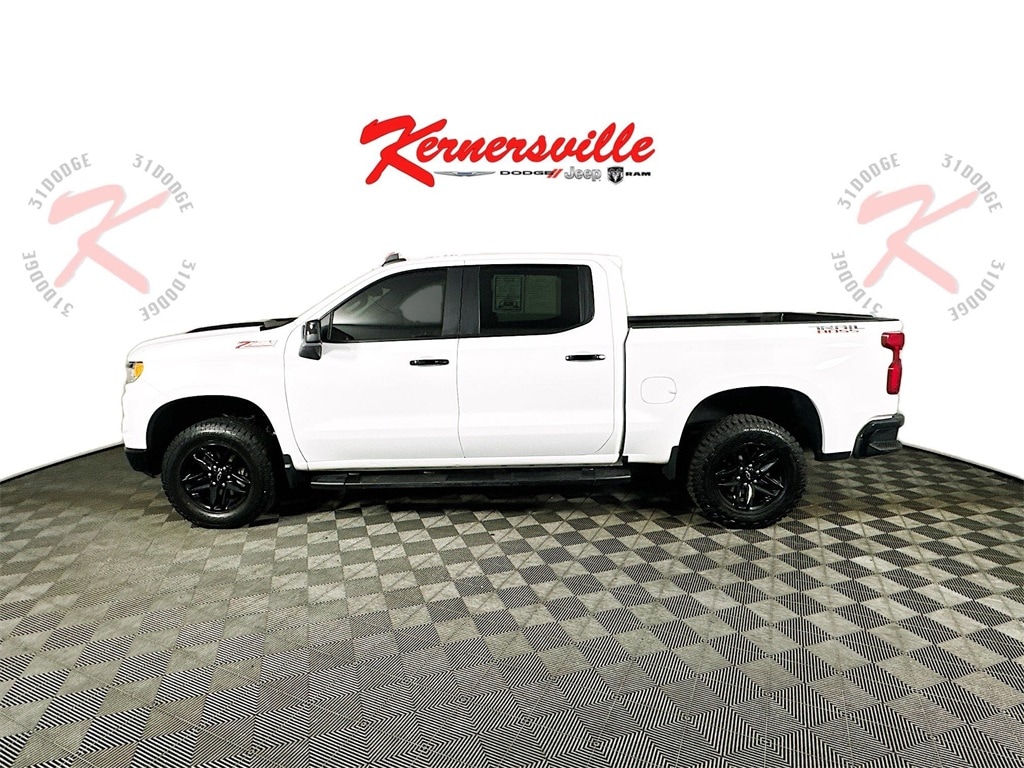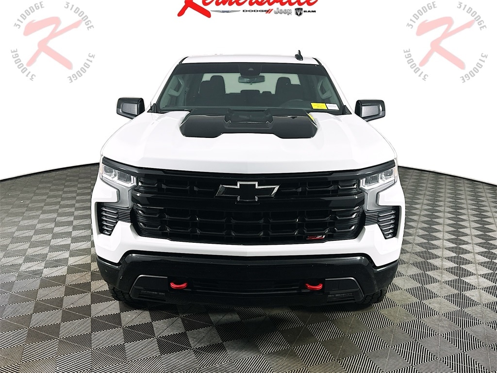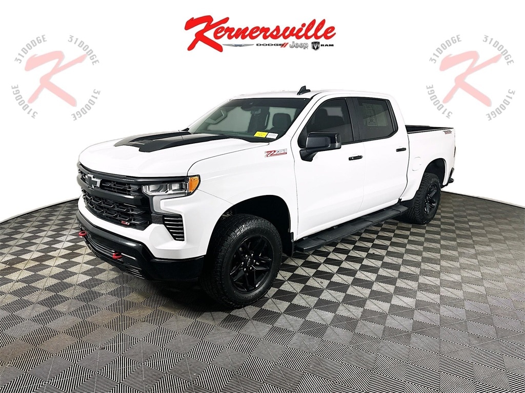 This 2024 Chevrolet Silverado 1500 Crew LT Trail Boss 4WD in Summit White with Jet Black interior is powered by a 5.3L EcoTec3 V8 engine paired with a smooth 10 speed automatic transmission and Autotrac 2 speed transfer case for confident four wheel drive capability. Equipped with the Z71 Off Road Package including a 2 inch factory lift, monotube shocks, skid plates, hill descent control, heavy duty air filter, and auto locking rear differential, this Silverado is built for serious performance on and off the road. Trailering is made easy with the trailering package featuring hitch guidance and an integrated trailer brake controller, along with Stabilitrak, trailer sway control, and hill start assist. Advanced safety technology includes Chevy Safety Assist with automatic emergency braking, forward collision alert, front pedestrian braking, lane keep assist with lane departure warning, following distance indicator, Intellibeam auto high beams, teen driver mode, and a tire pressure monitoring system with fill alert. Inside, enjoy a 13.4 inch HD touchscreen with Google built in, wireless Apple CarPlay and Android Auto, a 12.3 inch digital driver information center, remote start, push button start, keyless open and start, dual zone climate control, a 10 way power driver seat, heated wrapped steering wheel, and convenient USB ports and 120 volt power outlets. Exterior highlights include LED fog lamps, LED signature taillamps, LED cargo area lighting, CornerStep rear bumper, EZ Lift power lock and release tailgate, red recovery hooks, dual exhaust with polished tips, black tubular assist steps, and a Chevytec spray on bedliner with rear wheelhouse liners. This Trail Boss blends rugged off road strength with modern technology, premium comfort, and proven Silverado durability.