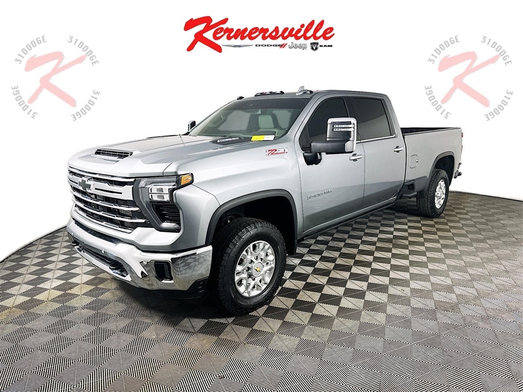 This Silverado 3500HD LTZ Crew Cab 4WD delivers serious capability and premium comfort with a Duramax 6.6L turbo diesel engine paired to an Allison 10 speed automatic transmission for confident towing and hauling performance. Equipped with the Z71 Off Road Package, this truck features an off road tuned suspension, hill descent control, skid plates, and an auto locking rear differential. Advanced safety and driver assistance technology includes automatic emergency braking, forward collision alert, lane departure warning, HD surround vision, trailer side blind zone alert, rear cross traffic alert, front and rear park assist, and a following distance indicator. The upscale interior offers heated and ventilated front seats, a heated steering wheel, dual zone automatic climate control, power front seats with driver memory, a large Chevrolet Infotainment 3 Premium touchscreen with wireless smartphone integration, Bose premium sound system, digital driver information display, remote start, and keyless open and start. Exterior highlights include LED headlamps and fog lamps, power adjustable heated trailering mirrors, CornerStep rear bumper, rear wheelhouse liners, and an EZ lift power locking tailgate, making this Silverado 3500HD LTZ a powerful and refined heavy duty truck ready for work or everyday driving.