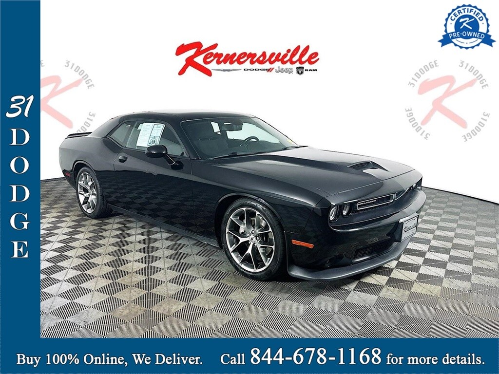 Inside, the Challenger GT features a driver focused cabin with performance inspired seating, dual zone climate control, a power adjustable driver seat, and a leather wrapped steering wheel with paddle shifters. The Uconnect infotainment system includes a touchscreen display with Apple CarPlay, Android Auto, Bluetooth connectivity, and steering wheel mounted controls for easy access on the road. Exterior details such as the functional hood scoop, aggressive front splitter, rear spoiler, and bold Challenger design make this coupe stand out wherever it goes. With its certified status and balanced blend of performance, technology, and comfort, this Challenger GT is an excellent choice for drivers seeking year round muscle car capability.