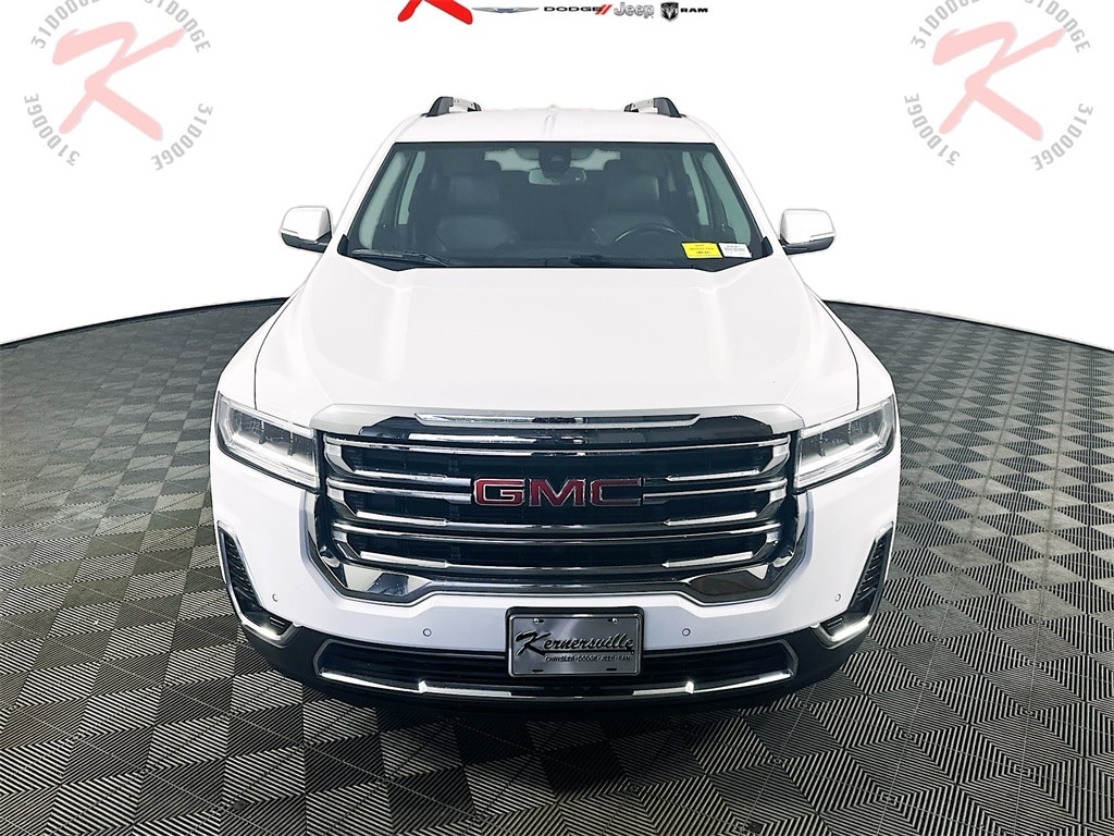This One Owner Clean CarFax 2023 GMC ACADIA SLT FWD has a 2.0L Turbocharged engine, automatic transmission, leather seats, Certified Pre-Owned, navigation system, rear-view camera, push start, remote start, heated seats, front power seats, steering wheel controls, 3rd row seating, auxiliary input, USB port, Bluetooth, keyless entry, and 68,192 miles. It is also equipped with 18in Cooper Tires, 18in Machined Aluminum Wheels, Acadia Pro Safety Plus, Lane Change Alert, Rear Cross Traffic Alert, Automatic Emergency Braking, Outside Heated Mirrors, Tri Zone Climate Control, Active Noise Cancellation, Apple CarPlay, Android Auto, 8in Color Touchscreen, BOSE Premium 8 Speaker System, and SiriusXM Radio.