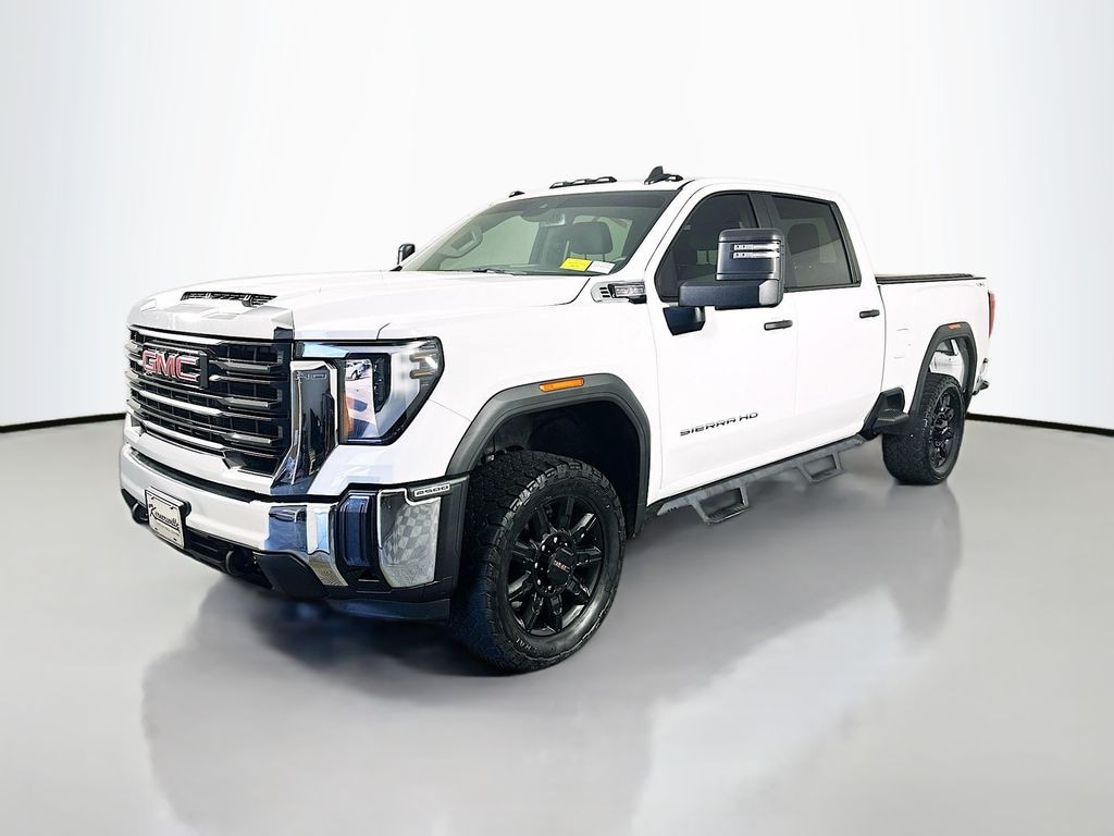 This 2024 GMC Sierra 2500HD Pro Crew Cab 4X4 delivers heavy duty capability, modern technology, and rugged durability, making it an excellent choice for drivers who need serious performance for work or towing. Powered by a 6.6L V8 gasoline engine paired with a proven Allison 10 speed automatic transmission and four wheel drive, this Sierra provides strong torque, reliable power delivery, and exceptional capability in demanding conditions. Built for towing and hauling, it features a trailering package with trailer sway control, integrated trailer brake controller, 2 speed electronic transfer case, auto locking rear differential, heavy duty air cleaner, 170 amp alternator, and multi leaf rear spring suspension for enhanced load support. Safety and driver assistance features include forward collision alert, automatic emergency braking, front pedestrian braking, lane departure warning, following distance indicator, IntelliBeam automatic high beams, rear vision camera, Teen Driver technology, and tire pressure monitoring with tire fill alert for added confidence. The Pro Safety Plus Package adds advanced features including rear park assist, lane change alert with side blind zone alert, and rear cross traffic alert, along with heated trailering mirrors for improved visibility. Inside, the cabin offers practical comfort with a 40 20 40 split front bench seat with center armrest storage, 60 40 folding rear bench seat, rear HVAC vents, air conditioning, power windows, and power door locks. Technology highlights include a 7 inch GMC infotainment system with color touchscreen display, Bluetooth audio streaming, wireless Apple CarPlay, Android Auto capability, remote access plan, and connectivity features designed for convenience. Additional features include a convenience package with EZ lift power lock and release tailgate, deep tinted glass, LED cargo bed lighting, rear window defogger, cruise control, and a 120 volt power outlet for added functionality. Exterior features include chrome front and rear bumpers, LED projector headlamps, CornerStep rear bumper, front recovery hooks, 17 inch machined aluminum wheels, spray in bedliner, and durable Sierra styling built for both job sites and everyday driving. This GMC Sierra 2500HD Pro combines heavy duty strength, modern technology, and practical features, making it a dependable truck ready for any job or lifestyle.