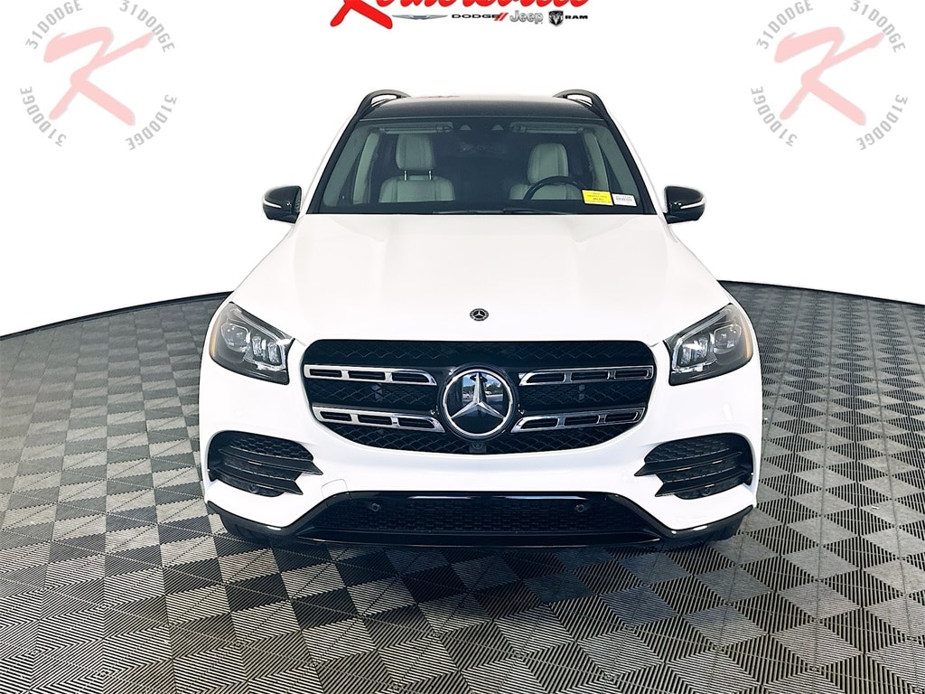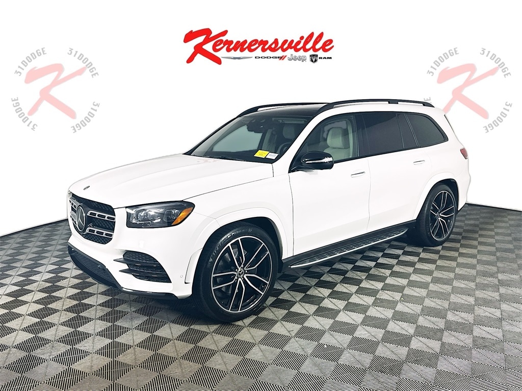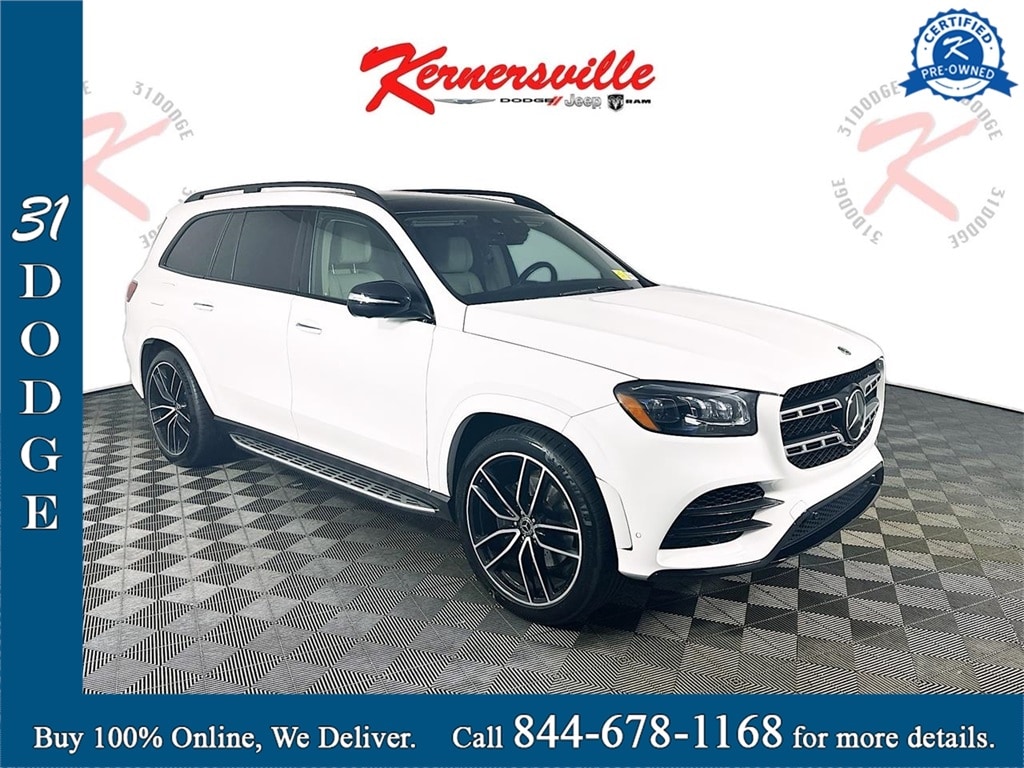 This Clean CarFax 2021 MERCEDES-BENZ GLS GLS 580 4MATIC 4MATIC has a 4.0L V8 engine, automatic transmission, cloth seats, Certified Pre-Owned, navigation system, panoramic sunroof, rear-view camera, side steps, push start, heated seats, ventilated seats, front power seats, steering wheel controls, 3rd row seating, auxiliary input, USB port, Bluetooth, towing package, cruise control, keyless entry, and 57,771 miles. It is also equipped with 23in Michelin Tires, 23in AMG Twin 5 Spoke Wheels with Black Accents, Night Package, Driver Assistance Package Plus, Exclusive Trim PKG, 6 Captain Chairs, Extended Restart by STOP and GO Traffic, 2 LCD Monitors, HERMES LTE Mobile Hotspot, 14 Way Driver Seat, 14 Way Passenger Seat, Directionally Adaptive Auto High Beam Headlamps, Roof Rack Rails, and Power Heated Side Mirrors.