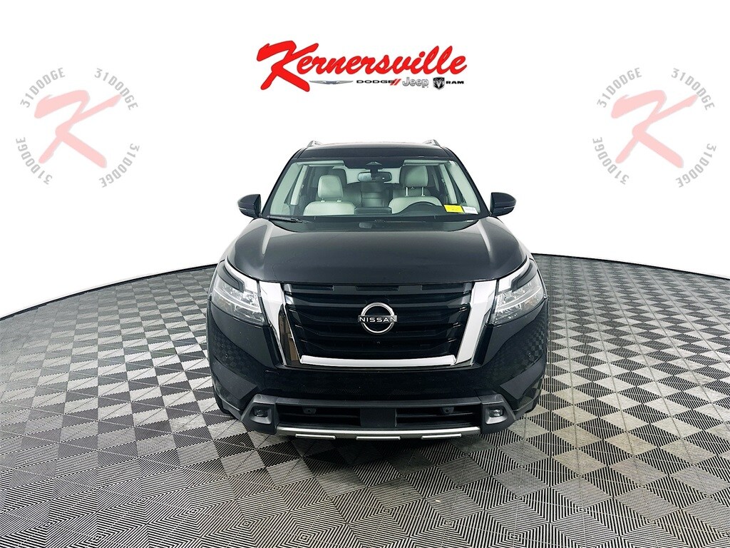 This One Owner Clean CarFax 2022 NISSAN PATHFINDER SL 4WD has a 3.5L V6 F DOHC 24V engine, automatic transmission, leather seats, Certified Pre-Owned, navigation system, rear-view camera, push start, remote start, heated steering wheel, heated seats, front power seats, steering wheel controls, 3rd row seating, auxiliary input, USB port, Bluetooth, towing package, cruise control, keyless entry, and 72,244 miles. It is also equipped with 255/60R18 tires, 18" Alloy Wheels, 9" Color Touch screen Display, WiFi Hotspot, Tri zone Automatic Temperature Control, Dual Power Heated Outside Mirrors, CarPlay, Android Auto, SiriusXM Radio, 10 way Power Driver Seat, Intelligent Forward Collision Warning, and Lane Departure Warning.