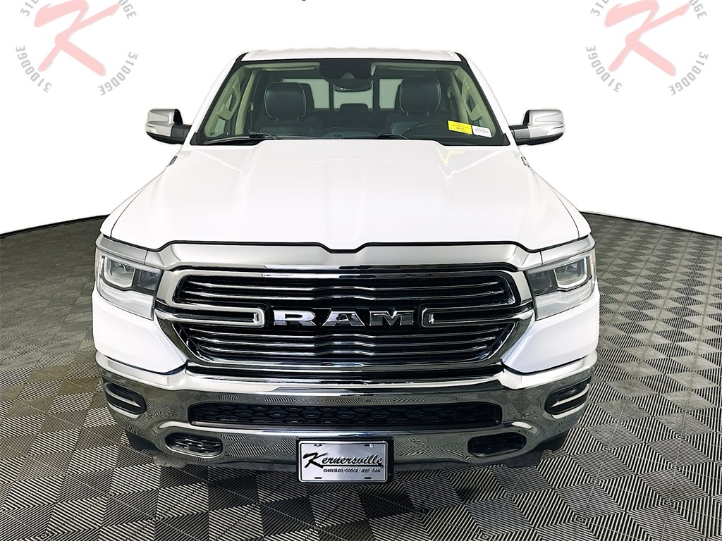 This Clean CarFax 2021 RAM 1500 LARAMIE 4WD Crew cab truck has a HEMI 5.7L V8 Multi Displacement VVT engine, automatic transmission, leather seats, Certified Pre-Owned, navigation system, rear-view camera, push start, remote start, heated steering wheel, heated seats, ventilated seats, front power seats, steering wheel controls, auxiliary input, USB port, Bluetooth, bedliner, cruise control, keyless entry, and 70,671 miles. It is also equipped with 275/65R18 Tires, Bed cover, Memory seats, Uconnect 4C NAV with 8.4Inch Display, 23Gallon Fuel Tank, 9 Amplified Speakers with Subwoofer, A/C with DualZone Auto Temperature Control, 2ndRow InFloor Storage Bins, Rear PowerSliding Window, RainBrake Support, ReadyAlert Braking, and FullSpeed ForwardCollision Warning Plus.