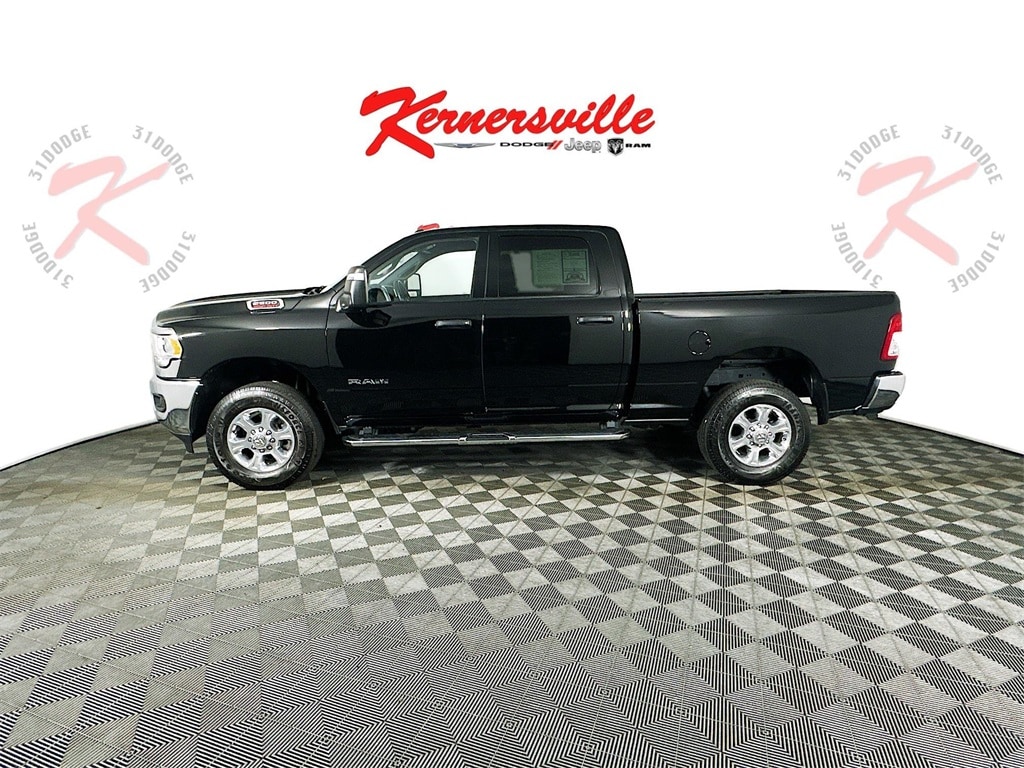 This 2024 Ram 2500 Big Horn Crew Cab 4X4 in Diamond Black Crystal Pearl Coat delivers heavy duty HEMI power, upgraded trailering capability, and modern connectivity in a durable full size pickup. Powered by the 6.4L V8 Heavy Duty HEMI MDS engine paired with the responsive 8 speed automatic 8HP75 LCV transmission and 3.73 axle ratio, this Ram 2500 provides strong performance for demanding jobs and towing needs. Equipped with the Level 1 Equipment Group, it features Uconnect 5 with an 8.4 inch touchscreen display, integrated voice command, selectable tire fill alert, 2nd row in floor storage bins, 8 way power adjustable driver seat, power heat fold and telescoping mirrors with supplemental signals and courtesy lamps, automatic power folding mirrors, front fog lamps, and steering wheel mounted audio controls. The Protection Group adds tow hooks and a transfer case skid plate shield for enhanced durability, while the Bed Utility Group includes LED bed lighting, deployable bed step by Mopar, and a spray in bedliner by Mopar for added functionality. Trailering features such as a Class V receiver hitch, 7 pin wiring harness, 4 pin connector wiring, trailer brake controller, trailer sway damping, electronic shift on the fly transfer case, traction control, hill start assist, and electronic stability control provide confident towing and handling. Interior features include a cloth 40 20 40 premium bench seat, power front windows with one touch up and down, full function media hub with USB ports and auxiliary input, front and rear floor mats, Sentry Key theft deterrent system, tire pressure monitoring display, and tailgate ajar warning lamp. Exterior highlights such as 18 inch polished aluminum wheels, chrome flat cab length side steps, automatic headlamps, halogen quad headlamps, locking tailgate, tailgate handle LED hitch lamp, power adjustable heated trailer tow mirrors, 31 gallon fuel tank, and full size spare tire complete this capable truck. Combining proven HEMI V8 strength, advanced infotainment, and rugged 4X4 performance, this Ram 2500 Big Horn Crew Cab is built to handle tough work with confidence and reliability.