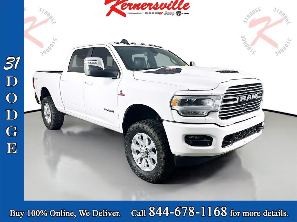 This 2024 Ram 2500 Laramie Sport Crew Cab 4X4 combines legendary Cummins diesel power, premium interior comfort, and heavy duty capability designed for serious work and towing. Powered by the renowned 6.7L Cummins I6 Turbo Diesel engine paired with a 6 speed automatic transmission, this Ram delivers outstanding torque, towing strength, and durability that truck owners depend on for demanding jobs. The advanced four wheel drive system with electronic shift on the fly transfer case provides confident traction and control in changing road or job site conditions. Inside the spacious Crew Cab interior, the Laramie trim offers upscale comfort with leather trimmed seating, heated and ventilated front seats, a heated steering wheel, dual zone automatic climate control, and power adjustable driver and passenger seats that make long drives comfortable. Technology is highlighted by the advanced Uconnect 5 navigation system with a massive 12 inch touchscreen display, integrated voice command, Apple CarPlay and Android Auto integration, SiriusXM connectivity, and a premium Alpine sound system for immersive audio throughout the cabin. Driver assistance and safety technologies include ParkSense front and rear park assist, blind spot monitoring with trailer detection and cross path detection, electronic stability control, trailer sway damping, and a rear backup camera that add confidence when driving or towing. Exterior highlights include the Sport Appearance Package with a performance hood, bold styling accents, polished aluminum wheels, power folding and telescoping mirrors with memory, tow hooks, and a durable heavy duty truck design ready for serious hauling. With legendary Cummins diesel capability, modern technology, and premium comfort, this Ram 2500 Laramie Sport is built to handle demanding workloads while delivering everyday refinement.