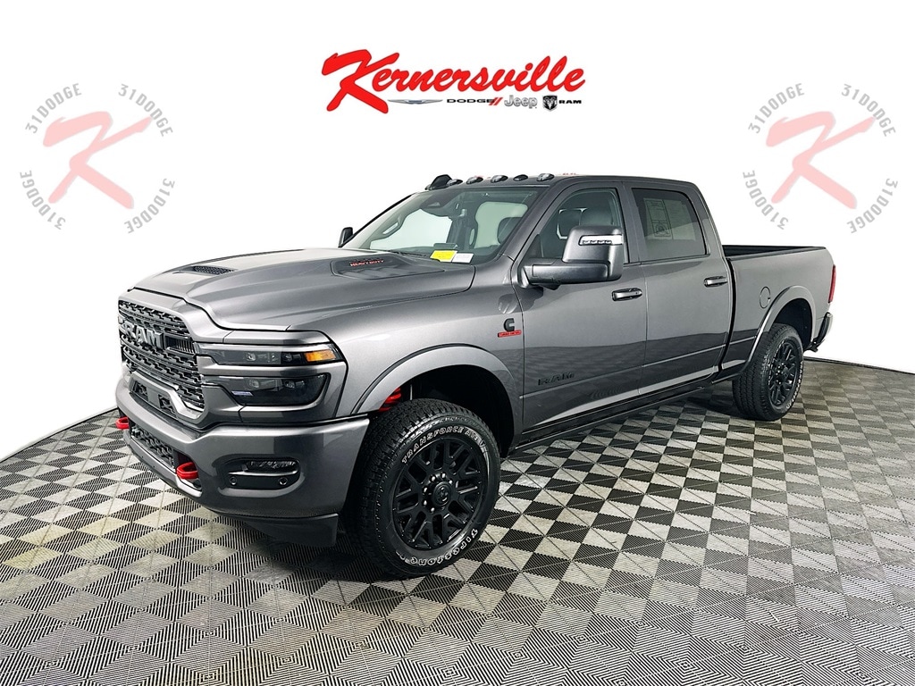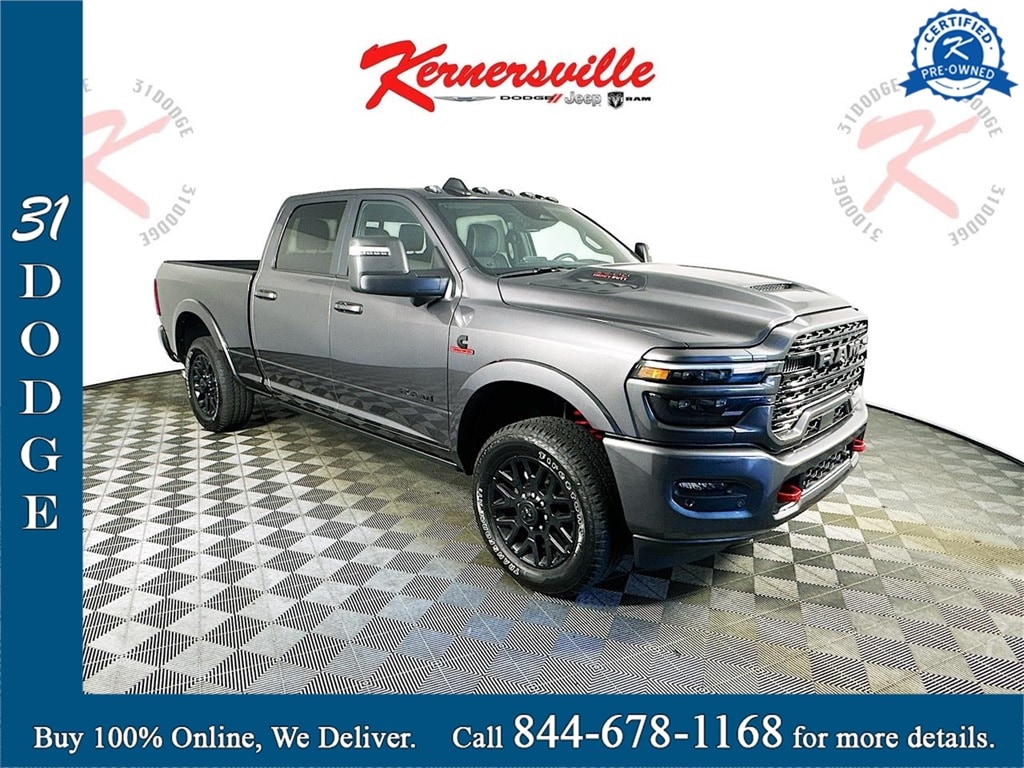 This One Owner Clean CarFax 2025 RAM 2500 LIMITED NIGHT 14IN 4WD Crew Cab truck has a 6.7L I6 engine, automatic transmission, leather seats, Certified Pre-Owned, navigation system, sunroof, rear view camera, power side steps, push start, remote start, heated steering wheel, heated seats, ventilated seats, power seats, front power seats, steering wheel controls, auxiliary input, USB port, Bluetooth, towing package, tailgate steps, spray in bedliner, 5th wheel mounting brackets, trailer brake controller, cruise control, keyless entry, and 2,348 miles. It is also equipped with LT285/60/R20 Tires, 20 inch tires, Memory seats, front tow hook, air suspension, surround view camera, active lane management, traffic sign detection, digital rear view mirror, 31 gallon fuel tank, heated second row seats, dual wireless charging pad, 17 speaker system, u connect 5 with 14 inch touch screen display, and blind spot detection.