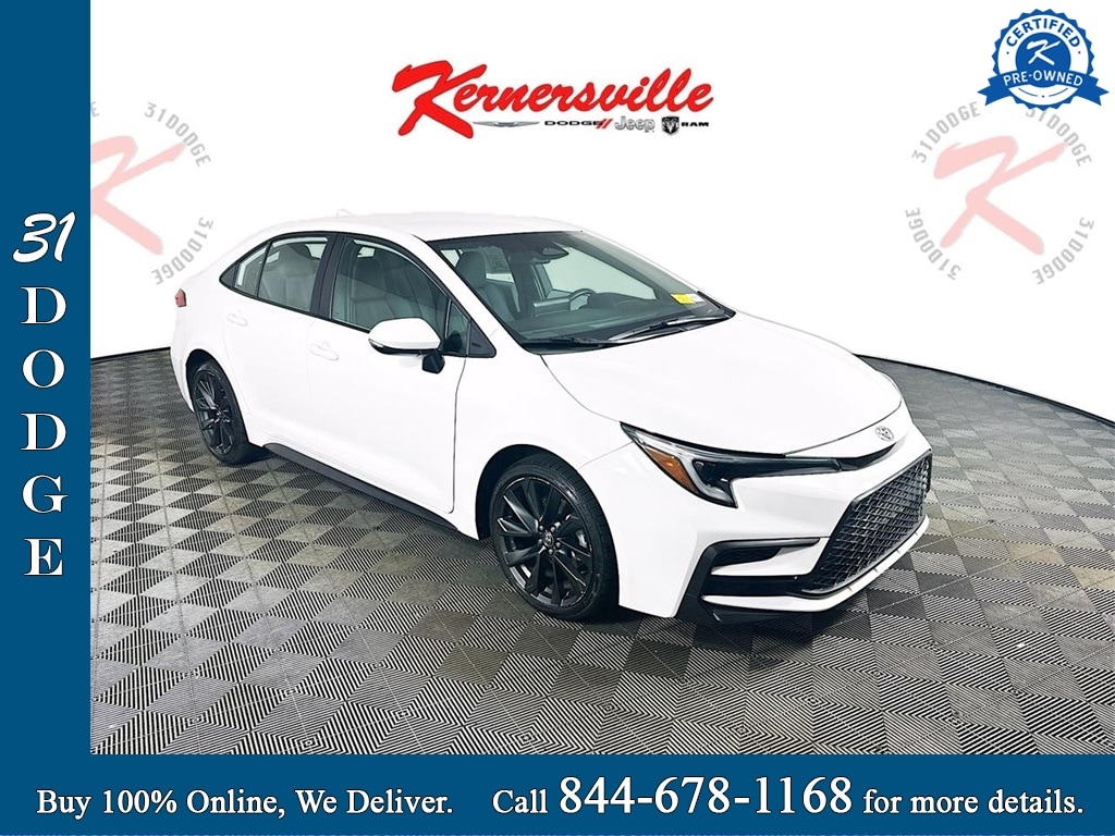 This One Owner CarFax 2024 TOYOTA COROLLA SE FWD has a 2.0L I4 engine, automatic transmission, cloth seats, Certified Pre-Owned, navigation system, rear-view camera, push start, steering wheel controls, auxiliary input, USB port, Bluetooth, cruise control, keyless entry, and 33,881 miles. It is also equipped with 225/40R18 tires, Daytime Running Auto High Beam Headlamps w/Delay Off, Automatic Air Conditioning, WiFi Connect Mobile Hotspot Internet Access, 6 way adjustable driver's seat, Adaptive w/Traffic Stop Go, 2 LCD Monitors In The Front, Speed Compensated Volume Control, and Voice Activation.