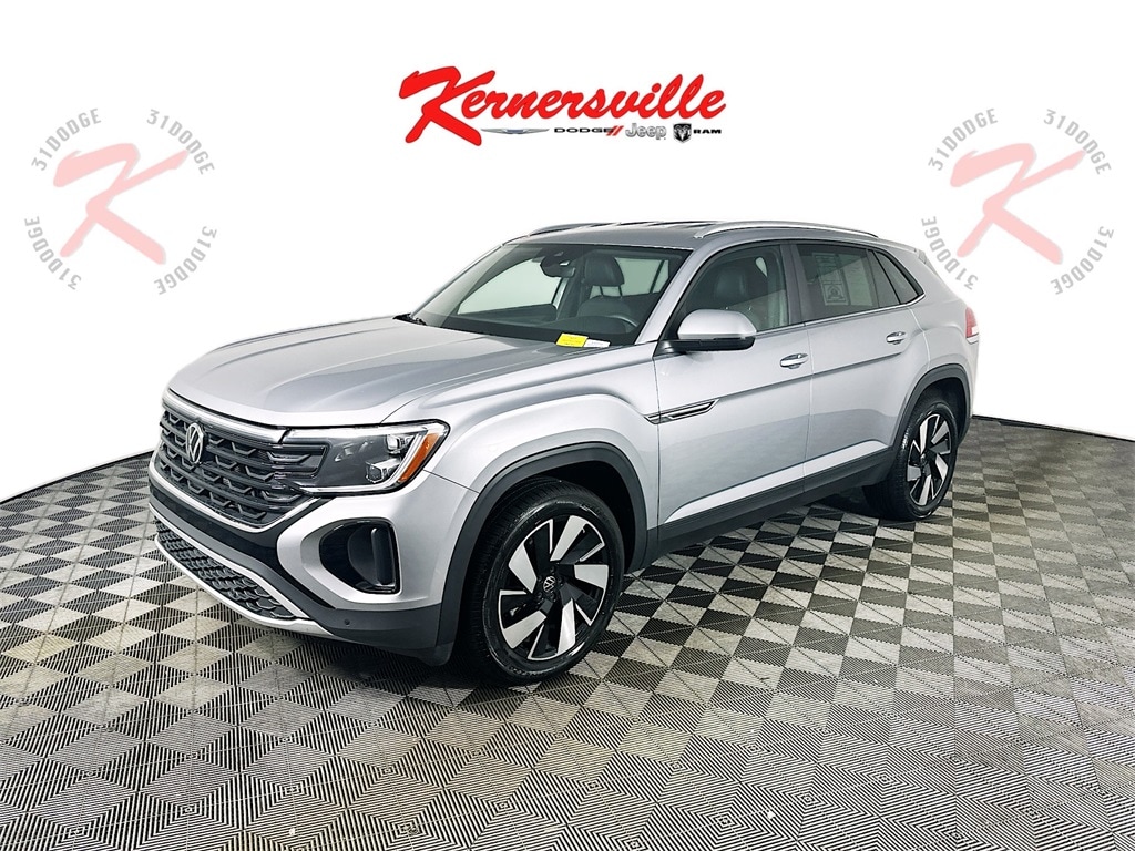 This 2024 VOLKSWAGEN ATLAS CROSS SPORT 2.0T SE W/TECHNOLOGY AWD has a 2.0L I4 engine, automatic transmission, cloth seats, Certified Pre-Owned, rear-view camera, push start, remote start, heated steering wheel, heated seats, ventilated seats, front power seats, steering wheel controls, auxiliary input, USB port, Bluetooth, towing package, cruise control, keyless entry, and 26,431 miles. It is also equipped with 255/50R20 tires, Black Wheel Well Trim, Forward Collision Warning and Autonomous Emergency Braking, Park Distance Control Front And Rear Parking Sensors, Cornering Lights, Daytime Running Auto Leveling Directionally Adaptive Headlamps w/Delay Off, Power Adjustable Driver's Seat w/Power Lumbar Support, Dual Zone Front Automatic Air Conditioning, Adaptive w/Traffic Stop Go, 8 Way Driver Seat, 2 LCD Monitors In The Front, 12in Touchscreen Multi Function Center Display, Voice Control, SiriusXM w/360L, 6 Speaker Sound System, 4G LTE Enabled WiFi, Apple CarPlay, and Android Auto.